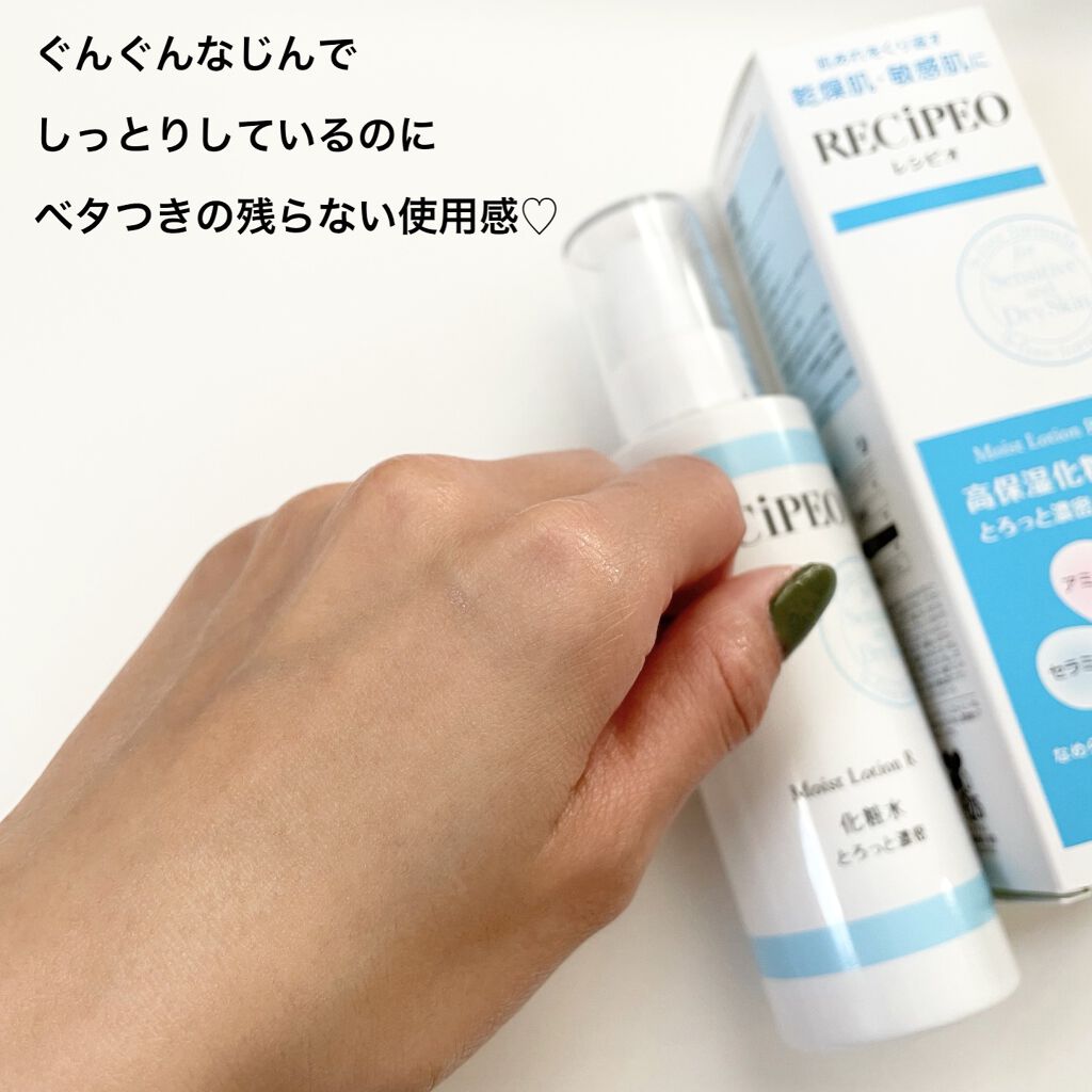 レシピオ🩵最初は化粧水だけを使っていましたが、とても良かったので今回は乳液も一緒にマツキヨで購入しました。化粧水は詰め替えがあったのでそれを購入しました!肌が乾燥してヒリヒリしていましたがこれは大丈夫で良かったです。ちゃんと保湿してくれるし、...