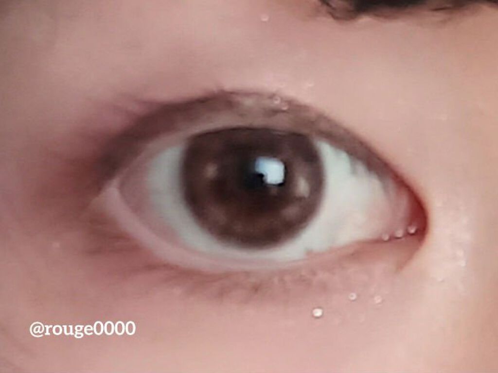 eyecloset1DAYMIZUAME着け心地〇発色◎黒目メイクしてる時の画像、室内灯アイクローゼットのシリーズと同じ着け心地、半日付けてても乾燥した感じがない発色がいい、派手よりのナチュラル遊ぶ時用って感じクリアベージュより着色直径が大き...