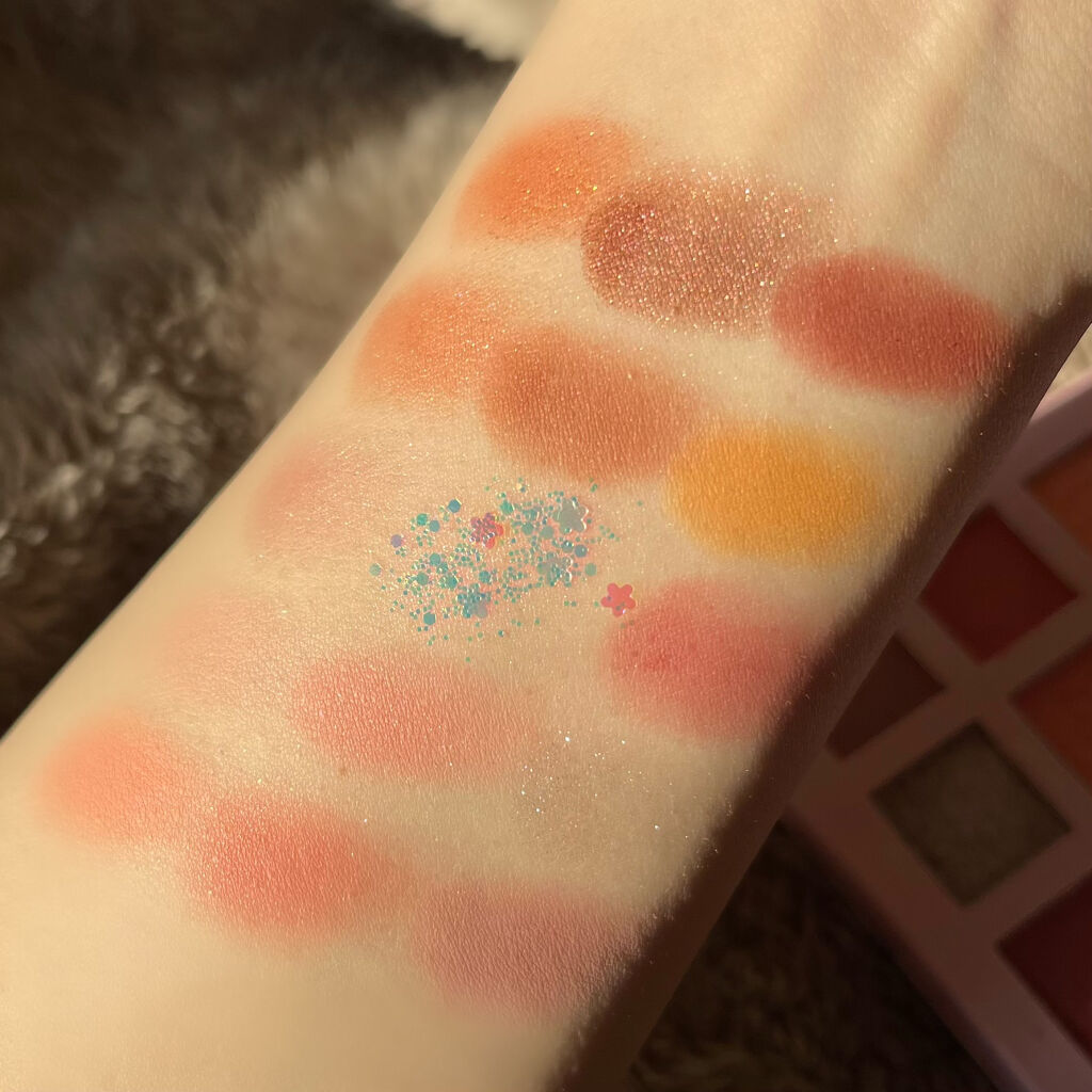 ADDICTIONの秋コレのパレットの中に入っているのに気づかず単色をお迎えしてしまいました😂笑 いざ単色で手に取ってみると可愛すぎて…! 太陽光での撮影なので少し暖かい感じに写っています。 1枚目でぎっしりの多色ラメ、伝わりますか?🥺 シンプルなメイクにたっぷり乗せてあげるのが可愛いです♡