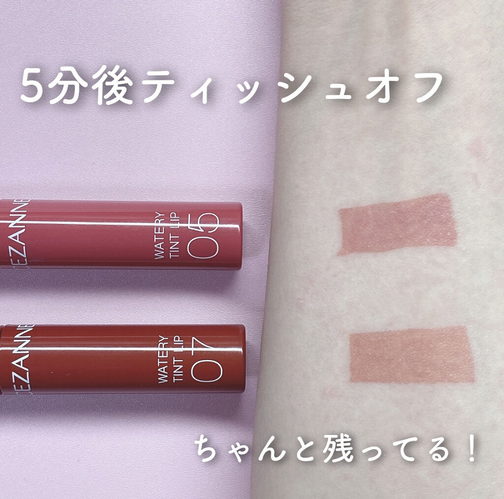 - ツヤ×色×潤いをキープする、セザンヌの新濡れツヤリップ みずみずしい濡れツヤ感ある仕上がりで、発色とツヤが長続きするティントリップです。ティントの発色を透明のベールで覆うリップコートのような処方で、ツヤ感と色をキープします。さらに、唇表面のべたつきは少なく、しっとり潤うオイルinウォーター処方を採用しています。