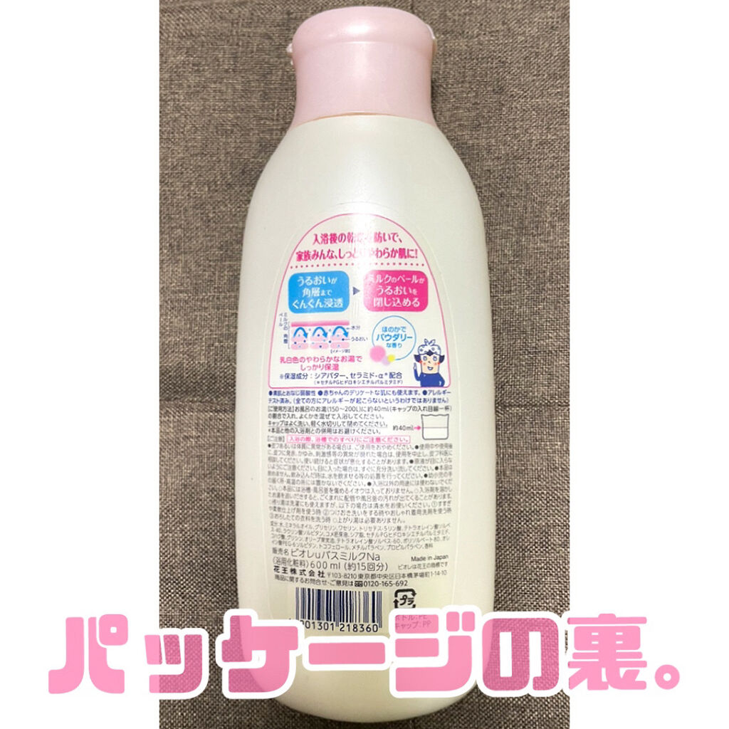 保湿入浴液というもので、大変である子どものお風呂上がりのボディケアがこれで🆗というもの😄 混ぜると乳白色になり、ベビーパウダーのような香りが😚 子どもたちにも高評でした✌️
