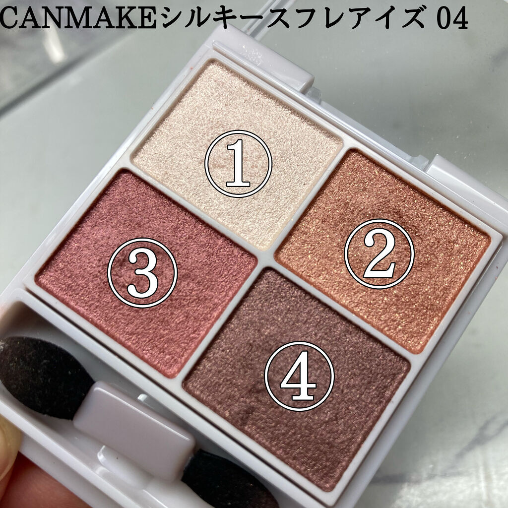 【ぬくもり夕焼けカラー♡しっかり上品発色パレ】キャンメイクシルキースフレアイズ04サンセットデート825円(税込)大人気「シルキースフレアイズ」のぬくもりブラウン系4色アイパレ!私はこのシリーズの素敵さを最近知ったからいまさらながら集めている...