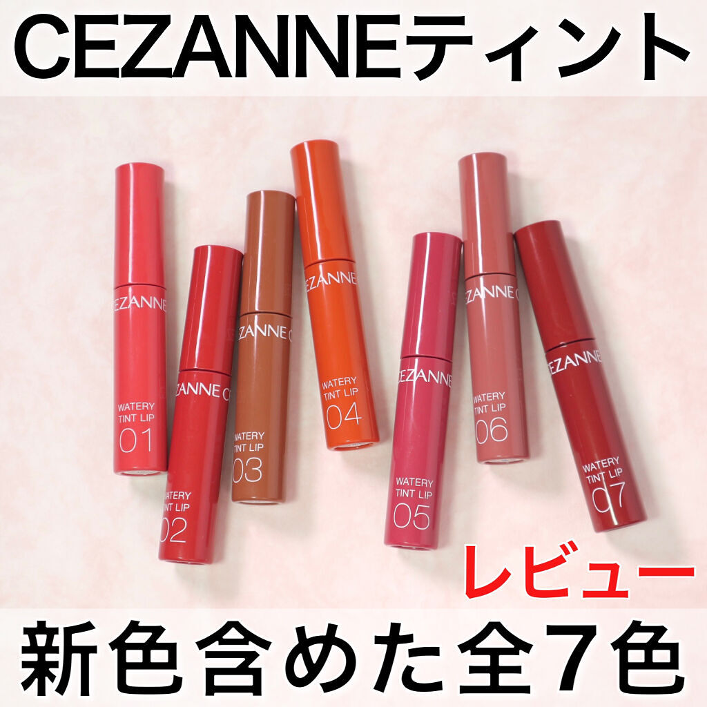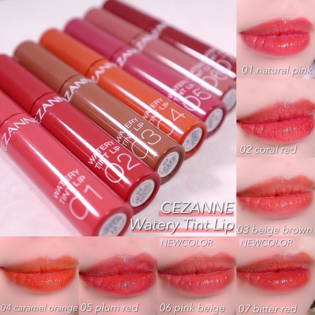 \セザンヌティント全色レビュー✨/#セザンヌ☑︎ウォータリーティントリップ今年の秋に04キャメルオレンジが廃盤になり09ピオニーピンクが新登場したセザンヌのティントリップせっかくなので全色購入してみました。P1コーラルブーケのみラメ入りパール...