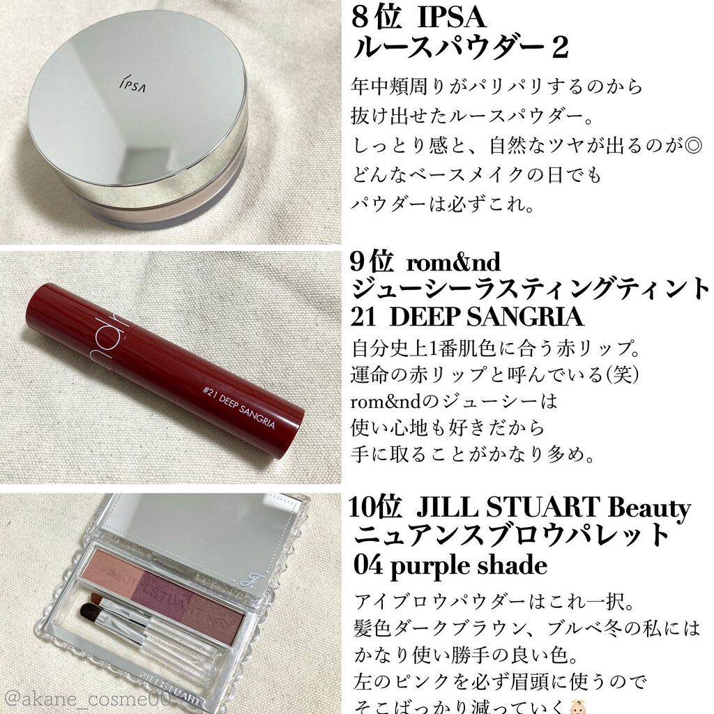 | 単色アイシャドウランキング第8位 | 高密度の多色ラメとクリアパープルが繊細に輝いて、目もとが一気に華やぐ印象でした💎 | 詳細を見る | |