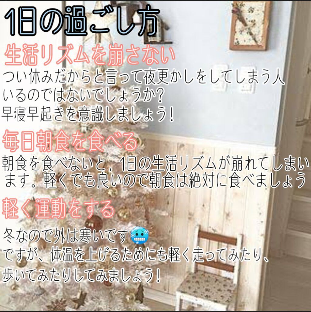 冬休みの期間でできる垢抜け方法について紹介していきます! 1枚目'' 冬休み垢抜け計画 2枚目'' もくじ 3枚目'' 勉強 4枚目'' 1日の過ごし方 5枚目'' 美容 6枚目'' 筋トレ💪