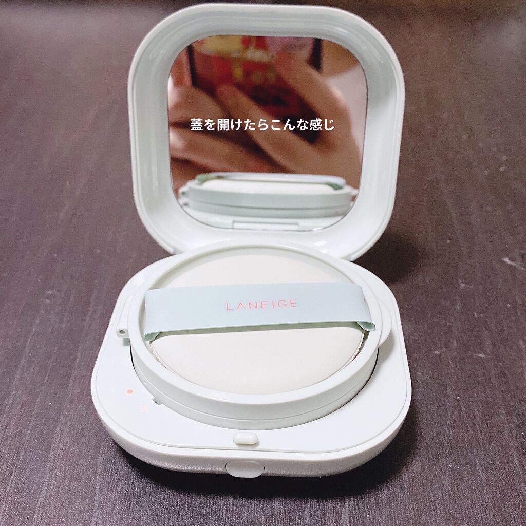- 肌にぴたっと密着することで、24時間*¹崩れにくい ナチュラルマット肌に仕上げる世界中で大人気のクッションファンデーション *¹当社調べ、個人差があります。 1.VIVID COVERAGE ™(ヴィヴィッドカバレッジ) 技術を採用 LANEIGEクッション史上最も小さいパウダーが、 しっかりカバーなのに重くなく、軽い付け心地とナチュラルな仕上がりを実現しました。 塗りなおしても厚塗り感がなく、カラーメイクをさらにひきたてます。 2.高い密着力を実現したStrong Fixing Formula™ (ストロングフィクシングフォーミュラー )技術を採用し、 皮脂や汗に強くマスクやスマートフォンにも ファンデーションがつきにくい肌に仕上げます 3.皮脂コントロールパウダー配合で汗や皮脂による崩れを防ぎ、 肌のうるおいを閉じ込め乾燥しずらい、ナチュラルなセミマット肌を実現します。 4.アモーレパシフィック初のブルーライトカット効果採用のクッション スマフォやPCといった電子機器、LEDや蛍光灯から発せられるあらゆるブルーライトから肌をプロテクトします。