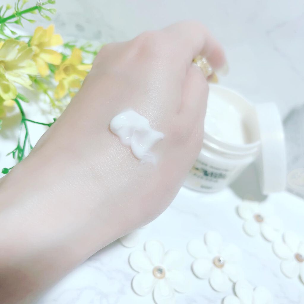 主に顔に使用していますがベタつかず使いやすいです。キシキシせずしっとりとした使い心地で上から下地やパウダーを重ねても重くなく使いやすいです🌱 テクスチャは軽いクリームのようで伸ばしやすい ほんのりピンク色で自然にトーンアップしてくれます♡ とっても使いやすいです!