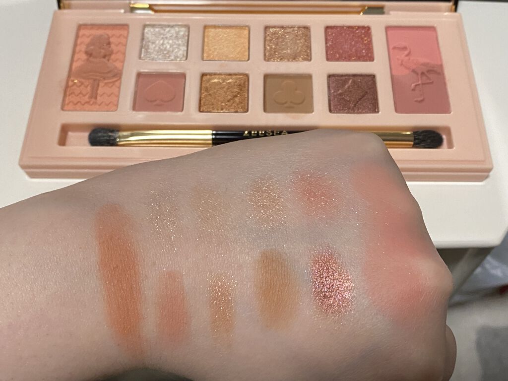 パッケージの上蓋がウォーターシールみたいにスパンコールが揺れ動くオシャレな作りで、オシャレなデザインなのが魅力。 ラメがめちゃくちゃかわいいしマットカラーの発色がえげつないのよ。 落ち着いた色合いのマットカラーも入ってるから意外と普段メイクにも使えちゃうというね。