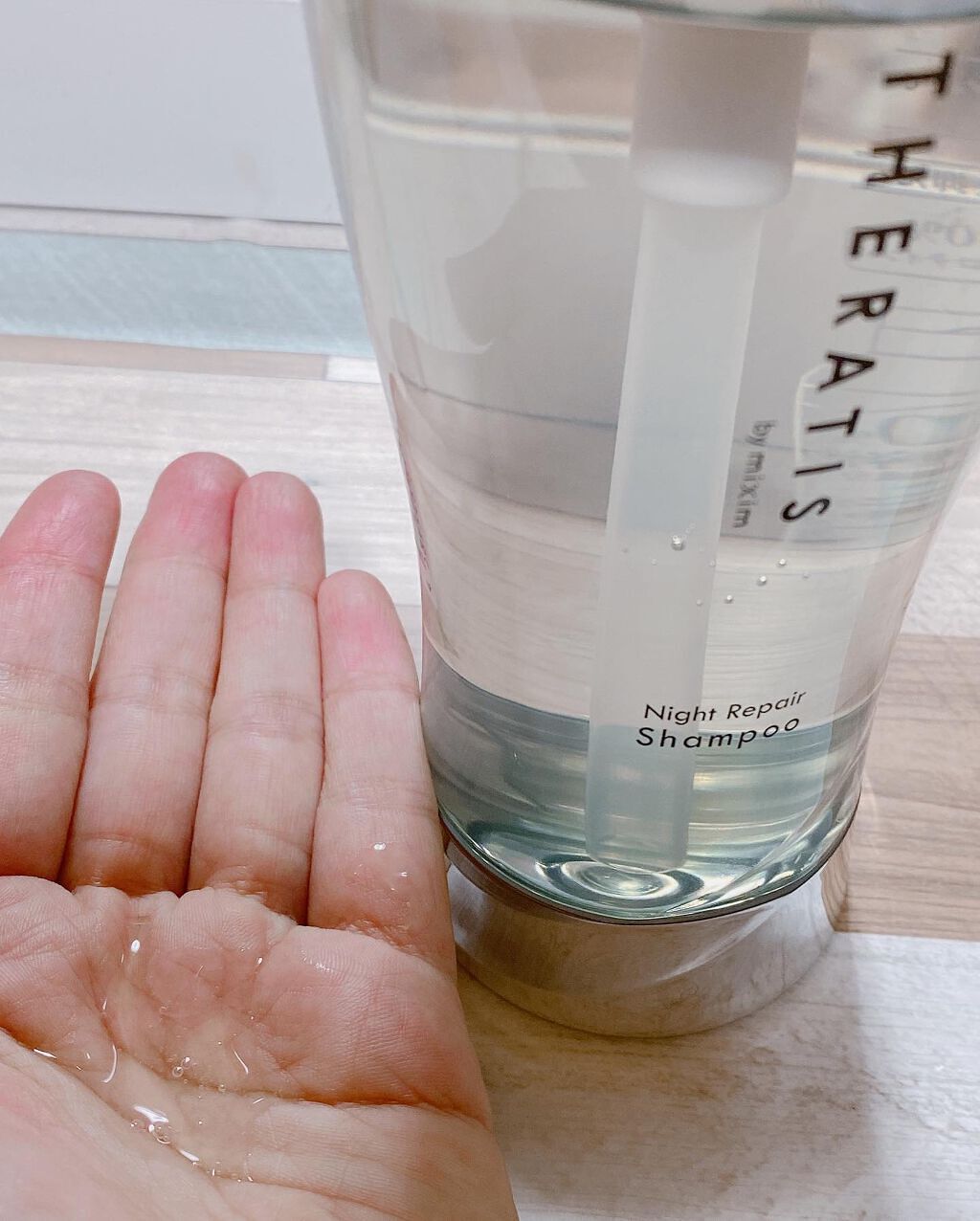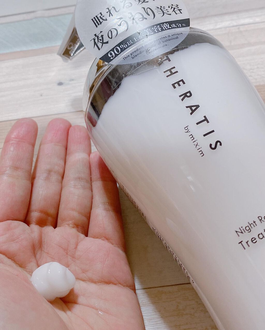 ♡『THERATISbymiximナイトリペアシャンプー/ヘアトリートメント』□説明寝ている間に補修成分がしみ込み、うねり・寝ぐせを抑制する新ナイトリペアヘアケア。90%以上が美容液成分。□感想お気に入りのヘアケアです...