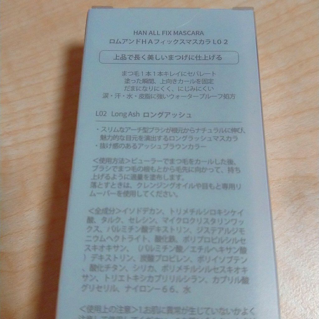 ロムアンドさまからいただきましたrom&nd(ロムアンド)ハンオールフィックスマスカラ/L02LONGASH1本1本のまつ毛をしっかりキャッチして、魅力的な目元を演出するムードマスカラ。セパレートされた綺麗な形と上向きカールを長時間キープしま...