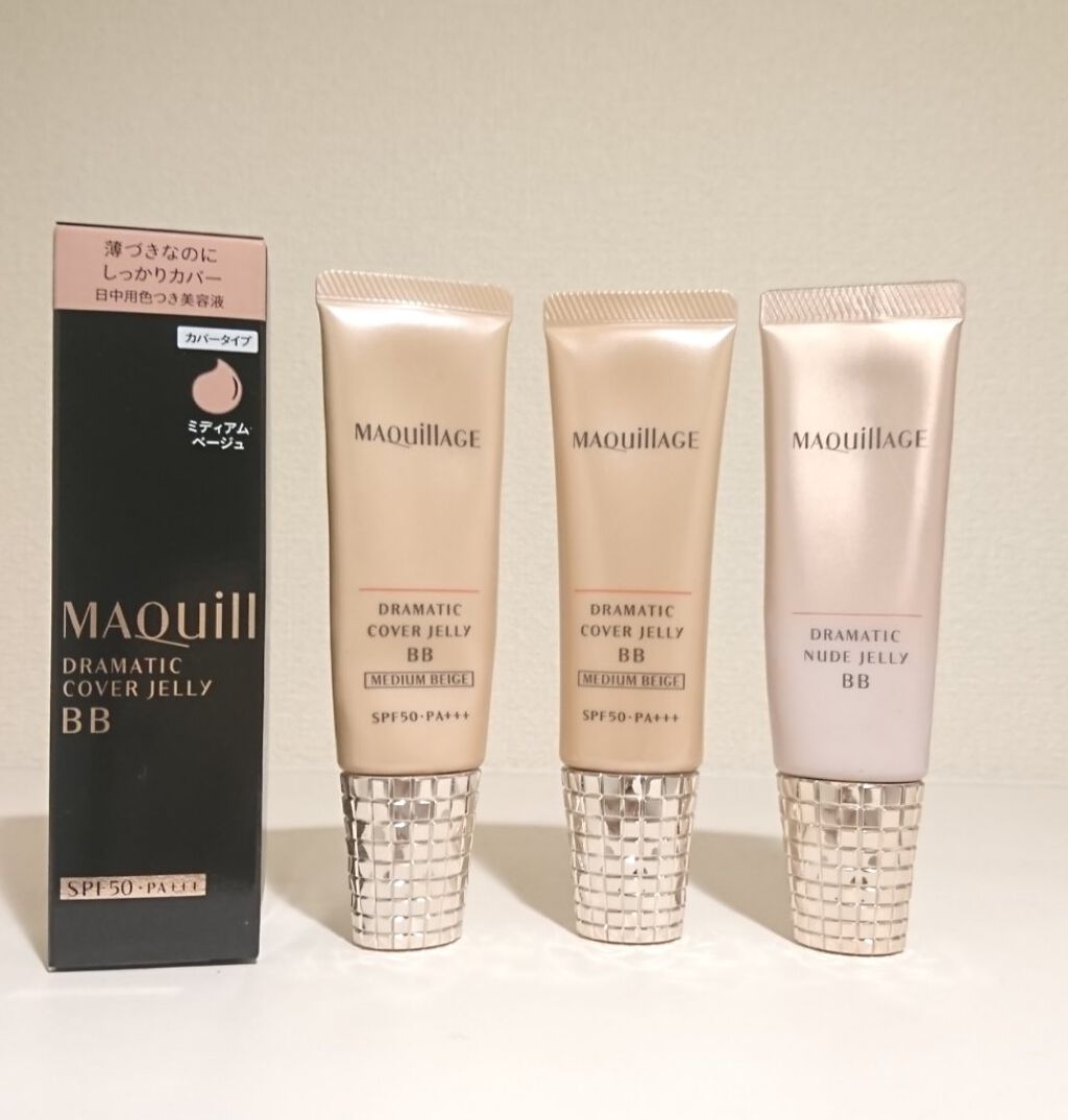マキアージュ ドラマティックカバージェリーBB ライトベージュ ¥3,080SPF50+・PA+++全2色薄づきなのにしっかりカバー、日中用色つき美容液。薄づきなのにしっかりカバーし、スキンケア直後のような透明うるつや肌へ。マスクにつきにくい...