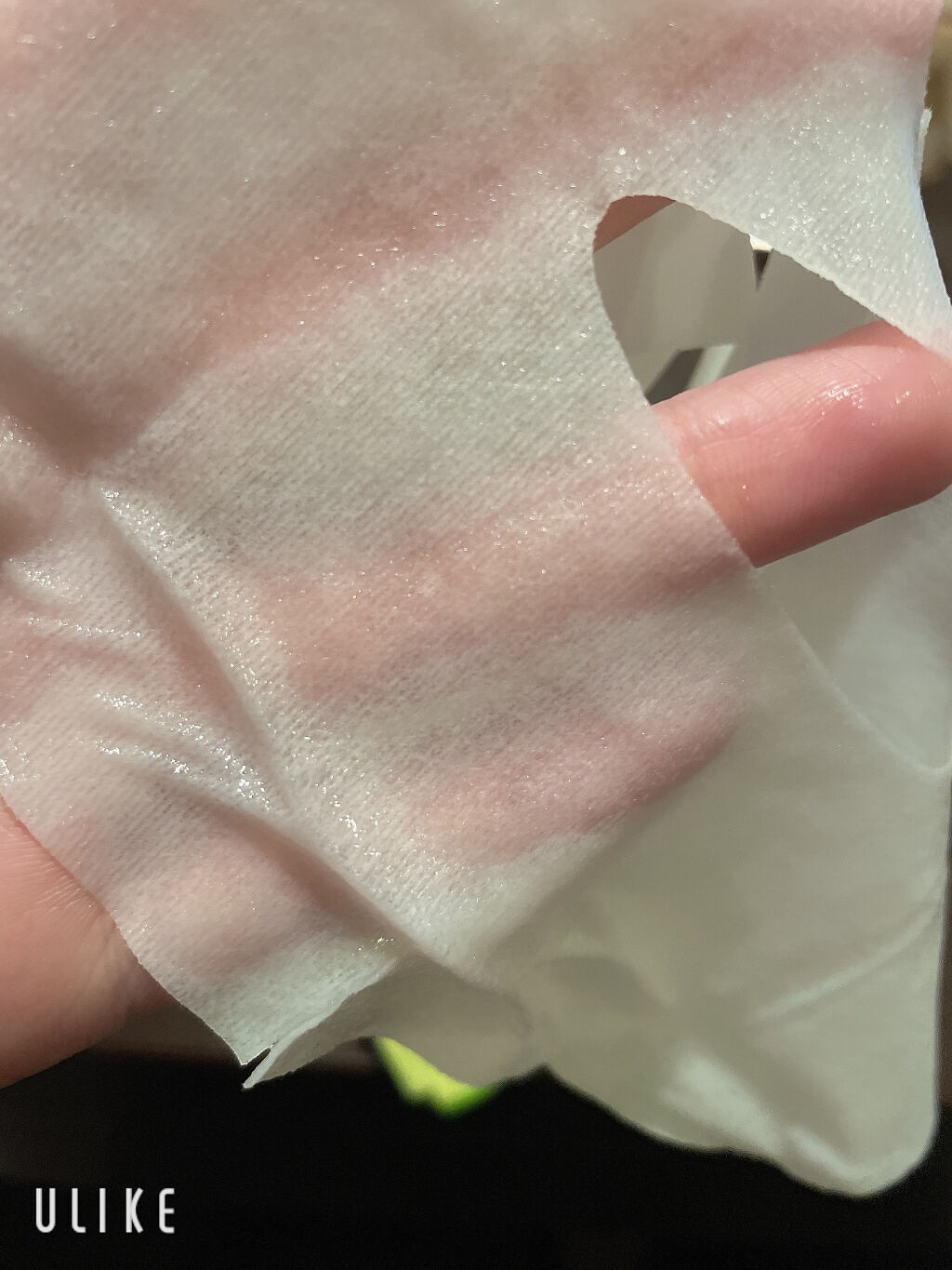 | シワも出来ずにぴたーっと密着。顔との一体感がすごい!そして液がヒタヒタなのに垂れてこない! | 詳細を見る | ||
