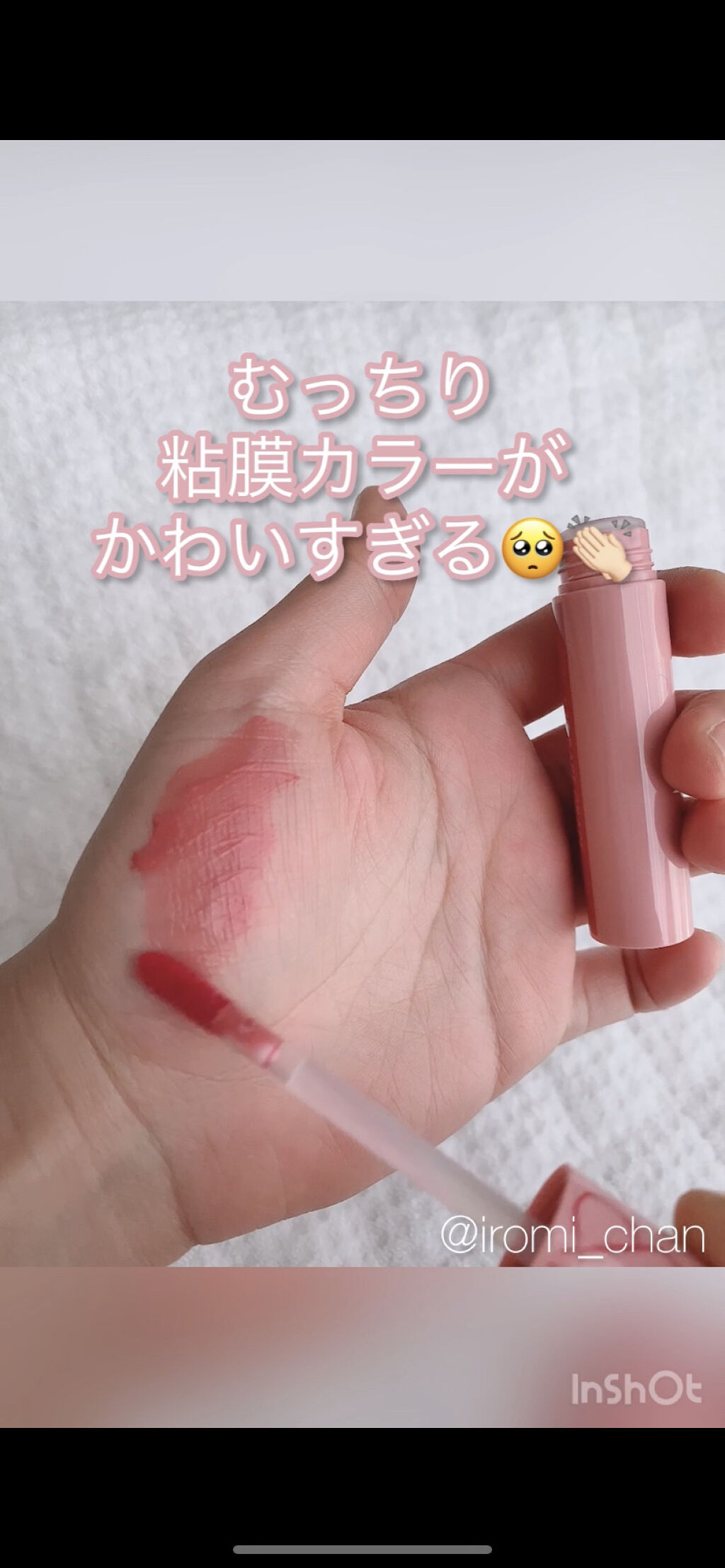クールトーンのピンクベージュカラー 私の肌や唇だと青みと赤みのあるピンクベージュに発色しました。ブルベさんが得意そうな色。ツヤが可愛い💕 私はイエベですが、透け感があるから薄く塗れば使えるかなと思いました。 ジューシーラスティングティントは香りが強めなイメージだったから使ったことなかったけど、塗って時間をおけばそんなに気にならなかったから、リニュ後の買ってみようかな🫶
