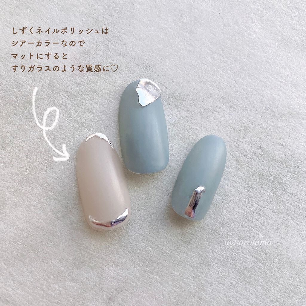| ネイルランキング第200位 | 金箔ホイルは結構出番があるのですが、銀はなかなか使わない、、けど、上に色を重ねるだけで、銀箔のクシュクシュ感がいい感じにお洒落に♡ | 詳細を見る | |