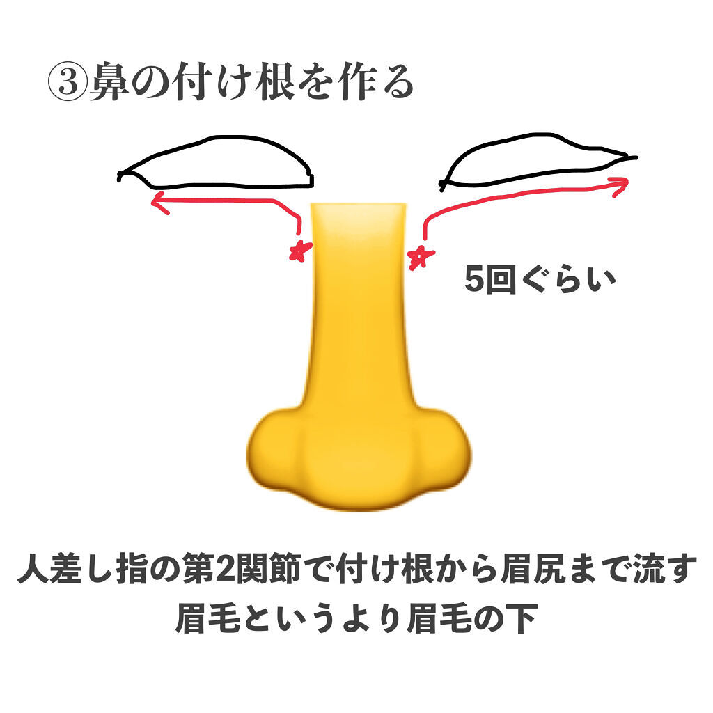 小鼻の影にコンシーラーを塗ります 影を消せるように明るめの色がおすすめです! 小鼻の内側5mmくらいに影を書きます これが小鼻の影のようになって、 実際の小鼻よりも小さく見せることができます 小鼻の影はペンタイプだと細く入れられる!