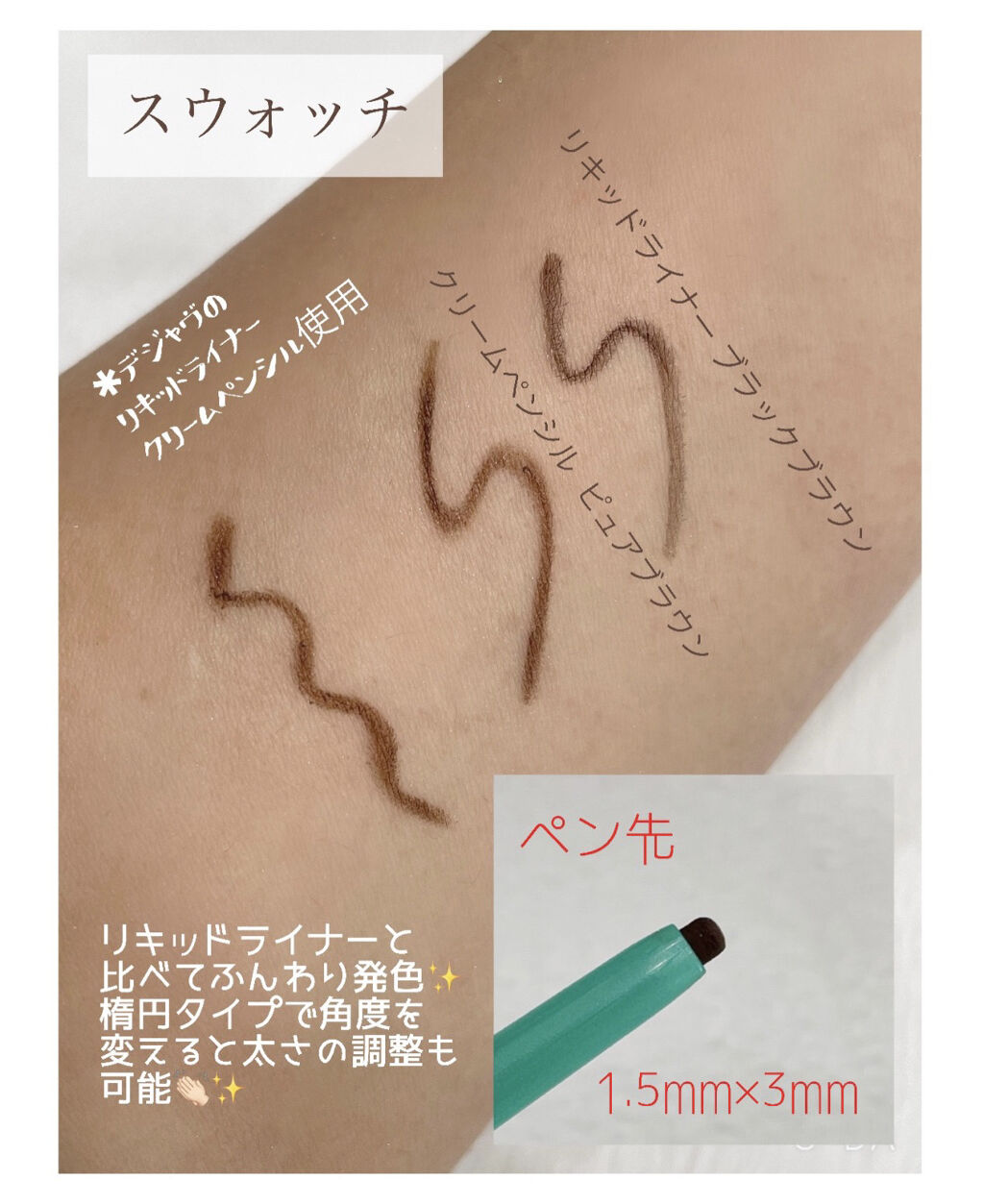 使い切り🍁デジャヴュのペンシル描きやすいこれは、リピートしますデジャヴュ💫「密着アイライナー」極細クリームペンシルダークブラウン細くも太くも、にじまずなめらか密着アイライナークリームペンシル🟥細くも太くも自在1.5mm×3mmの楕円型の芯。芯...