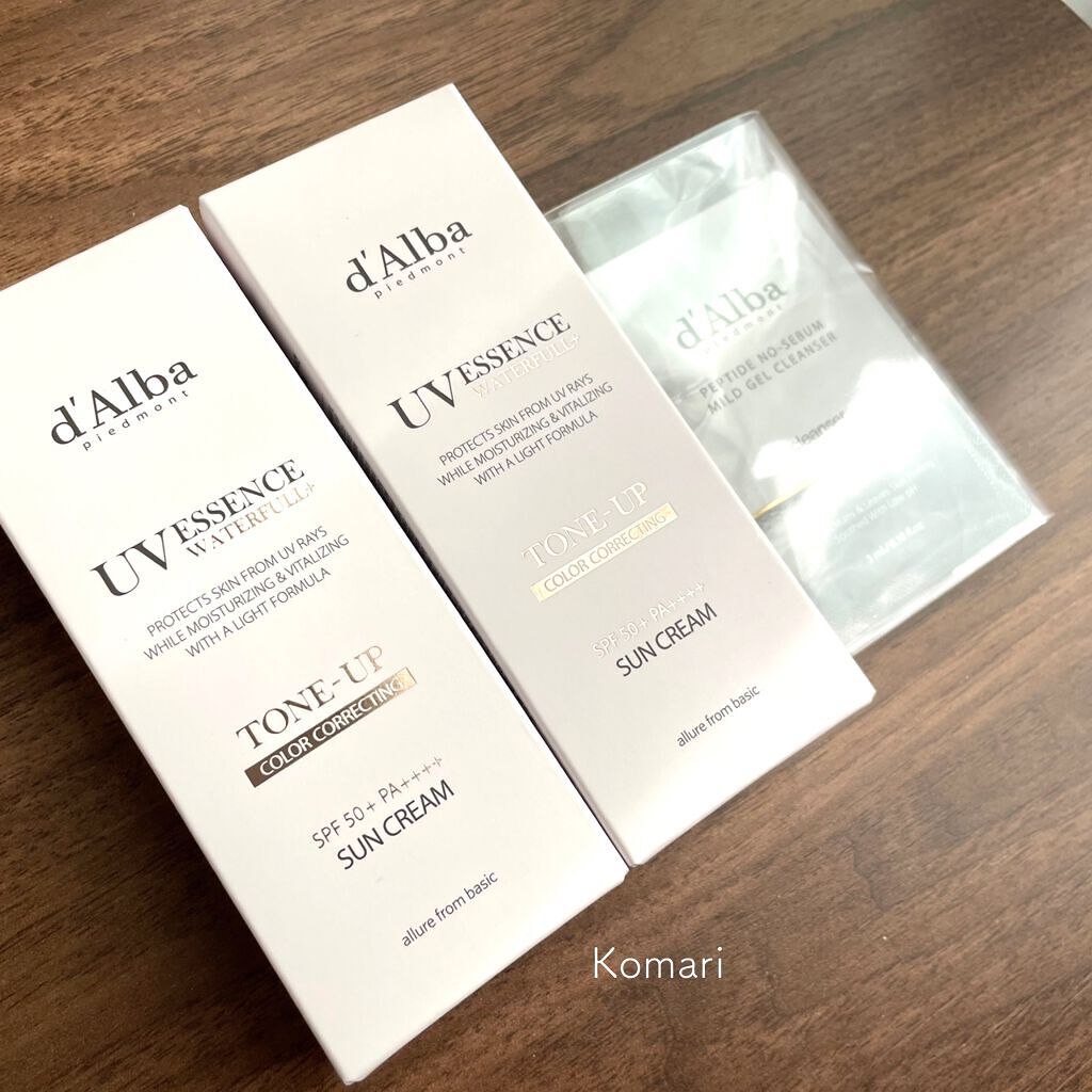 ☀️d’AlbaUVEssenceWaterfullTone-UpSunCreamSPF50+・PA++++ほんのりピンクのトーンアップで、くすみを飛ばして透明感のある肌に仕上がる日焼け止め♡みずみずしいエッセンス処方だから、乾燥しにくくて下...