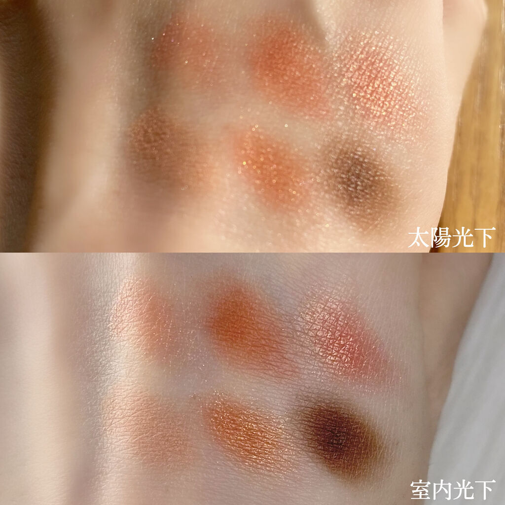 アイメイクは、本日は裸眼メイクで失礼します😔 オレンジのマットをアイホール全体に塗って 濃いブラウンを締め色に。 ラメは左上のを黒目上にのせてます✨ 肌なじみのいいゴールドラメが凄い好きです🥺 ほかの2色のラメはまだ使用してないので 今度別パターンのメイクもしたいなぁ🙁 3枚目メイク画像、4枚目スウォッチ貼ってます✨ 良かったら参考にしてください😌🙏🏻