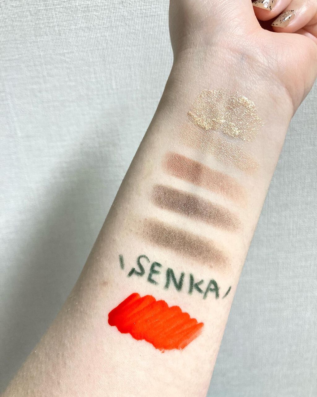 リップモンスターの落ちにくさはそのままに トレンドの「盛れるベージュ系カラー」らしい✨ 高発色なのに肌馴染みの良い透け発色と艶めくような繊細ラメで目元が重たくならず KATE独自のスノースキンフィット技術で、高補整(毛穴&色ムラ・くすみをカバー)することで白光トーンアップ*してくれるよ😉