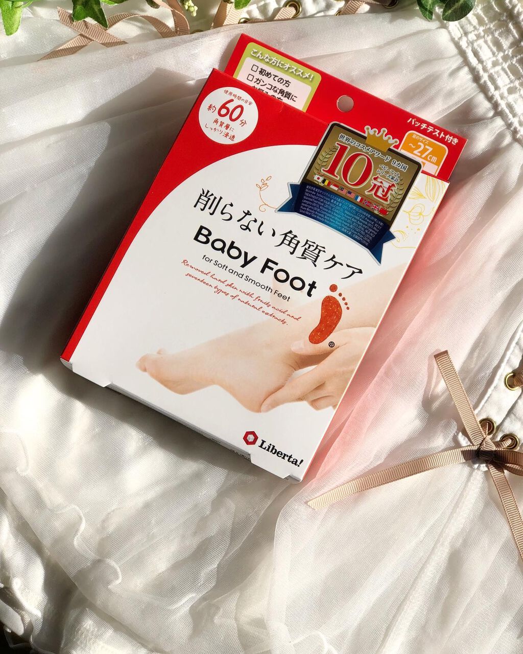 乾燥でカサカサになった足の角質のケアにおすすめのフットパックをご紹介! こちらをお試しするのは2度目ですが、前回角質が綺麗に剥けつるつるになったので今回も楽しみにしていました♡ 使用後3日ほど経つと、お風呂上がりに角質が浮いてくるようになり、少しずつ古い角質が剥がれていきます、もちろん痛みはなし!!