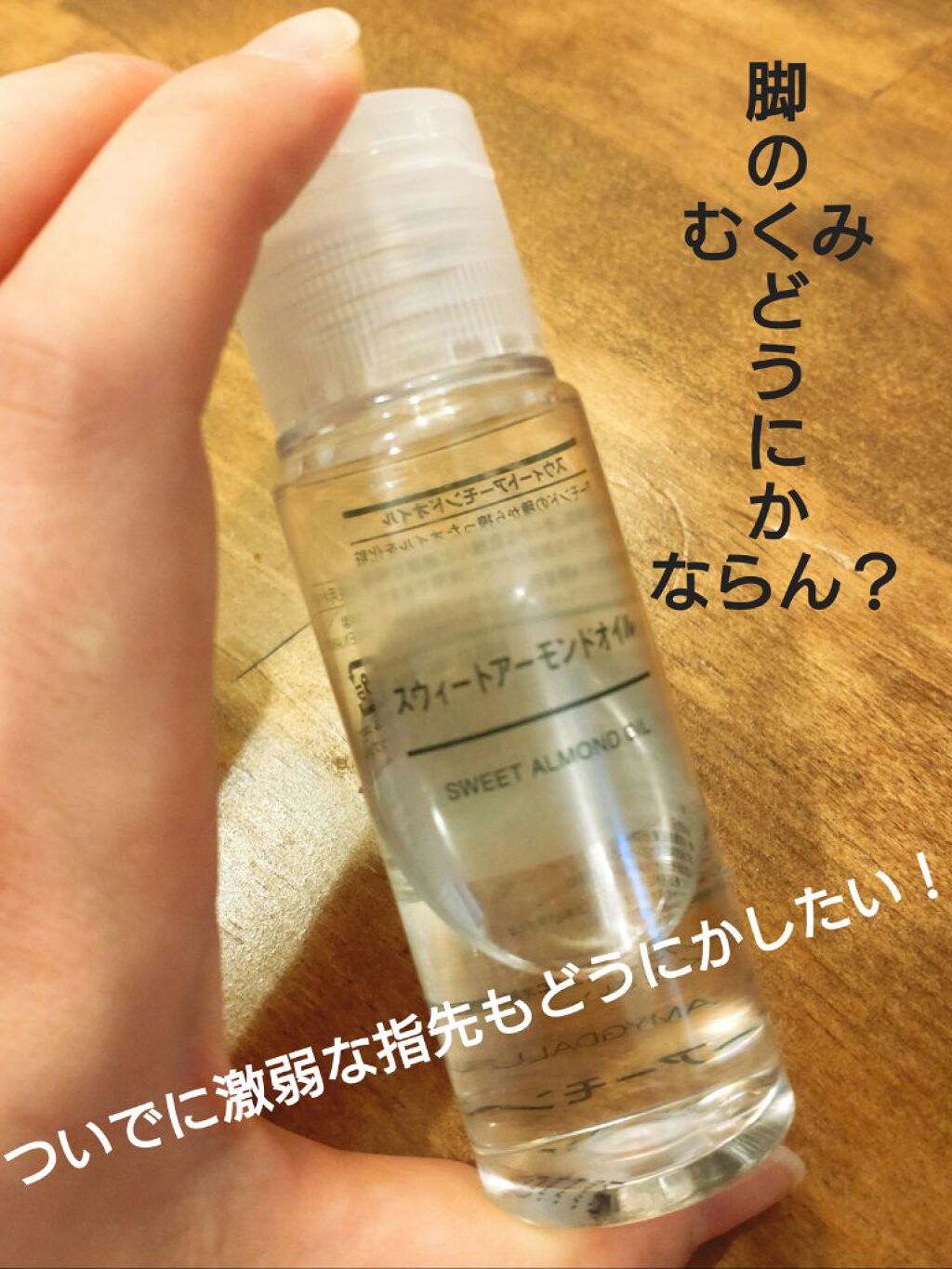 無印良品のスウィートアーモンドオイルをボディケアに愛用しています! 重みがあるテクスチャーですが、浸透するとしっとりと保湿されつつもべったりしないです! 香りがついてないので、他のボディケア用品とも併用しやすいです👏