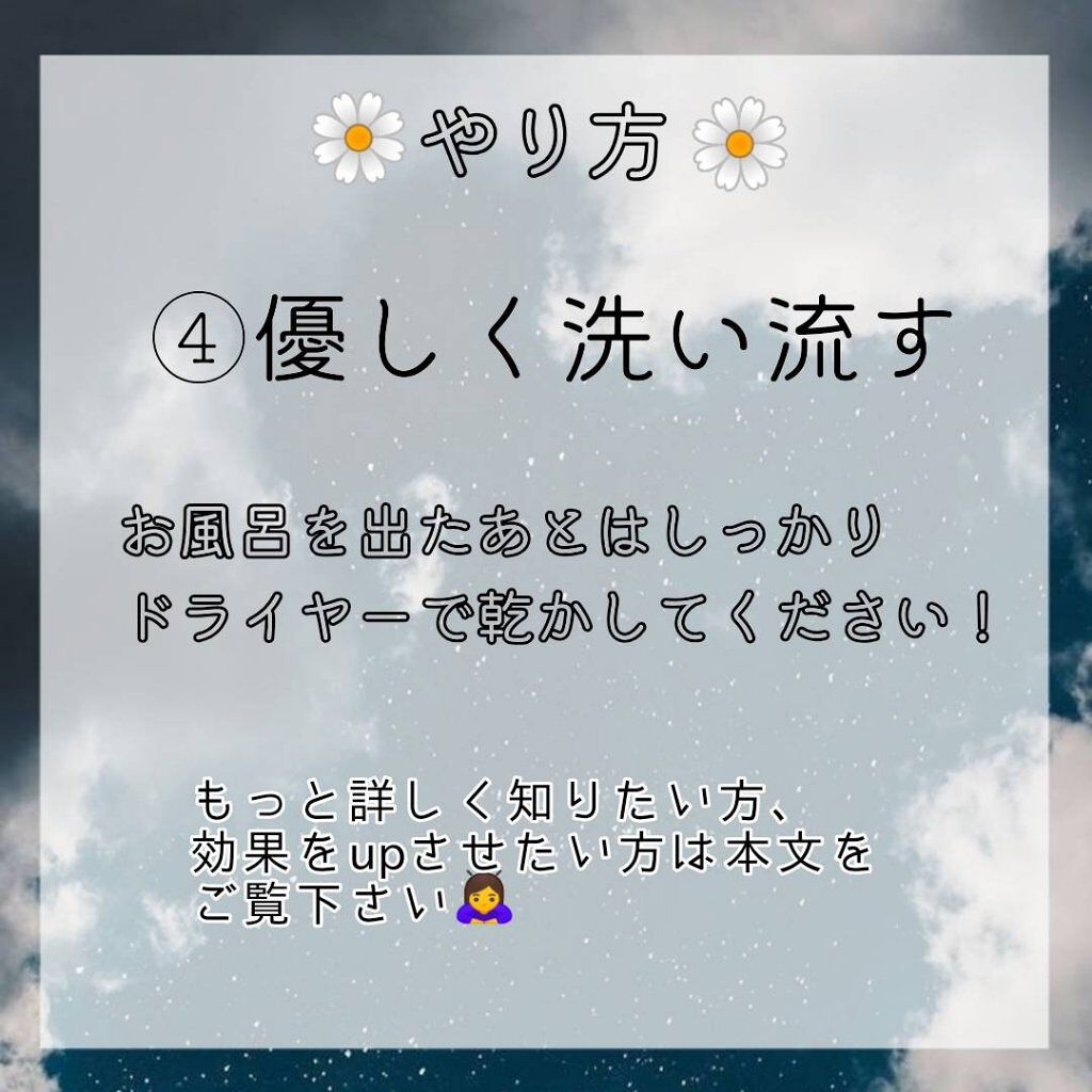 こうすることで、待っている間に塗ったトリートメントが流れにくくなります😏 ヘアオイル多めですが、そこは好みで調節してください🤗 ホミホミと揉み込むようにつけてください。 髪につけた後はすこしコームで梳かします。 熱いホットタオルを頭に巻いてから待つとよりトゥルントゥルンになります! コームで梳かしながら流すと指通りがよくなりますよー! またヘアオイルなどをつけてすぐにドライヤーで乾かしてください🙇♀️