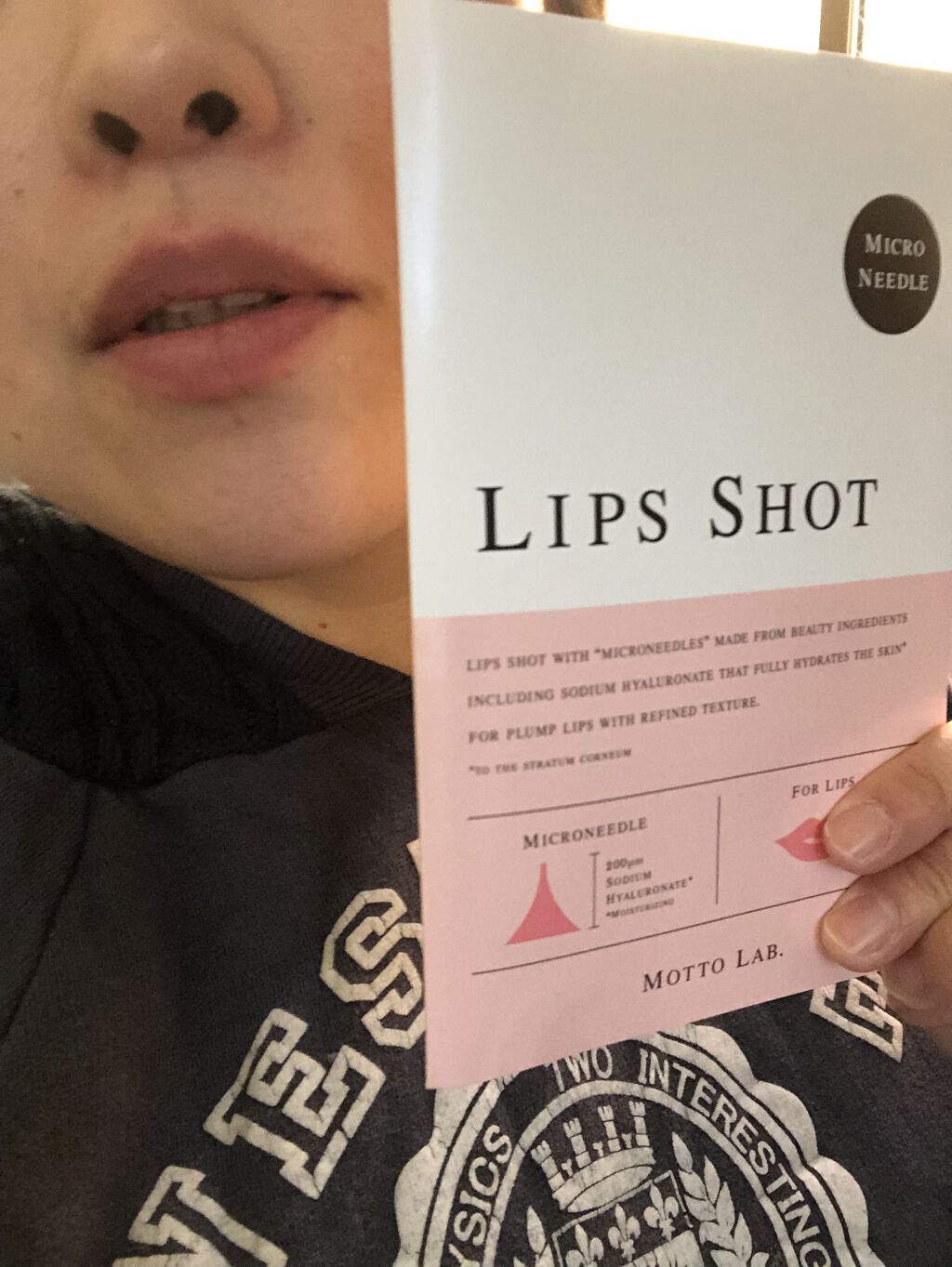 - LIPS SHOTは唇を自然にふっくらさせる唇専用パックです。唇をふっくらさせるヒアルロン酸Naなどのプランプ成分を、針状に結晶化した独自開発のマイクロニードルで、塗るだけでは届かないプランプ成分を唇の角質層までダイレクトに届けることができます。 [セット内容] ・モットラボ リップパック(シート状美容液/1回分) ・モットラボ プランプエッセンス(唇用美容液/2g)