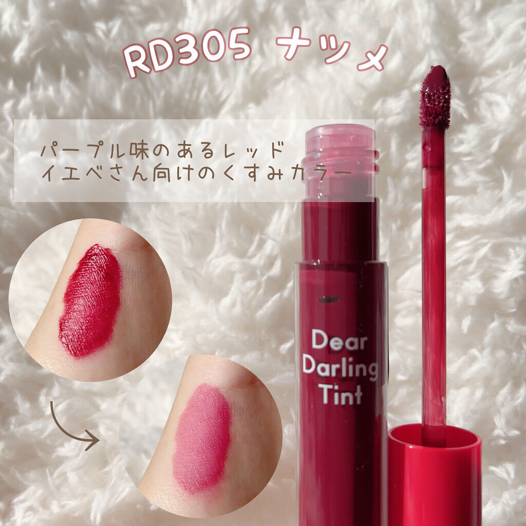 - フレッシュな果汁が華やかに彩り、思いのまま色づくウォータージェルティント 大人気のダーリンティントがカラーバリエーションが増えてパワーアップ わたしの魅力を引き出す14色のレッドのカラバリ 一度つけたら長時間キープ!!女子会ランチもデートのティータイムも心配なし。 果汁のようなみずみずしい仕上がり♪ 保湿成分配合*でかわいく色づきながら潤いケア。 しっとりしたジューシーなリップに仕上げます。 *ザクロ果実エキス、サピンヅストリホリアツス果実エキス