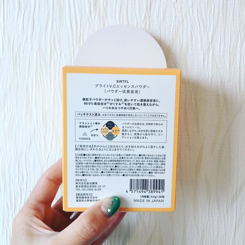 SIRTFLブライトV.Cエッセンスパウダーパウダー状美容液0.4g✖️30包\微粒子パウダーがサッと溶けて、 使いやすい濃縮美容液/パウダーの主成分は甘味料で知られるソルビトール。甘味料がお肌に良いとはビックリです!手のひらに1包分を取...