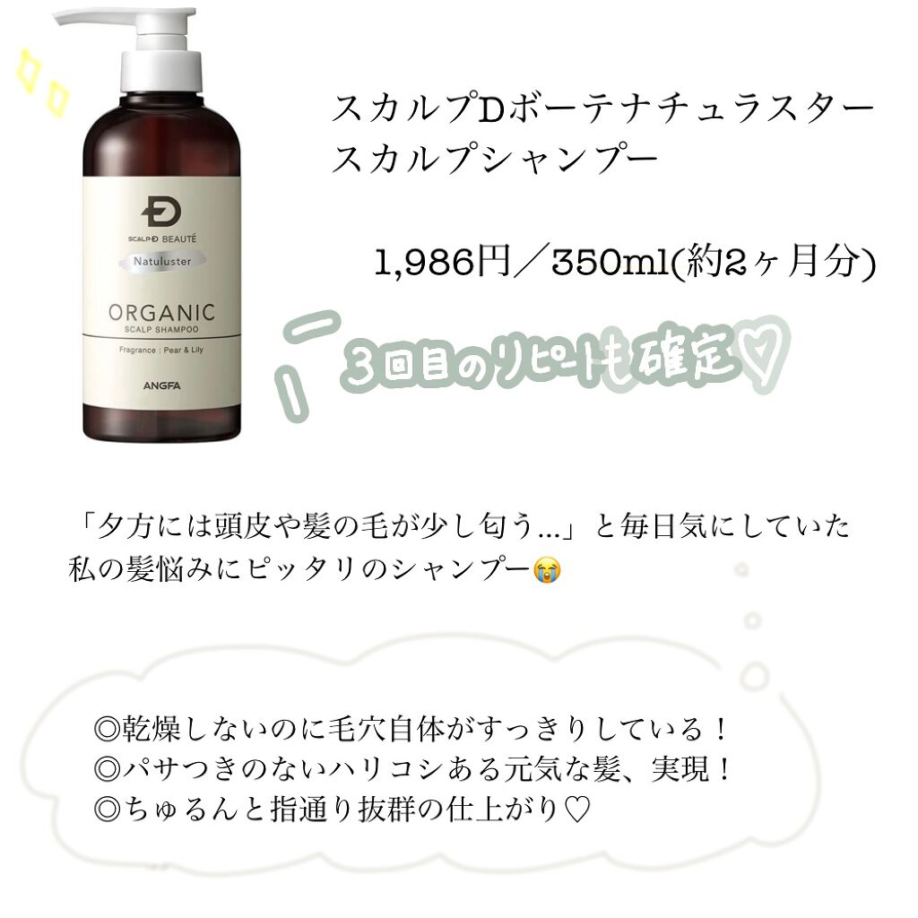 | スカルプシャンプーランキング第91位 | 洗い上がりは、さっぱりしつつ、しっとり仕上がり 乾かした仕上がりは、軽いサラサラ仕上がり😆 | 詳細を見る | |