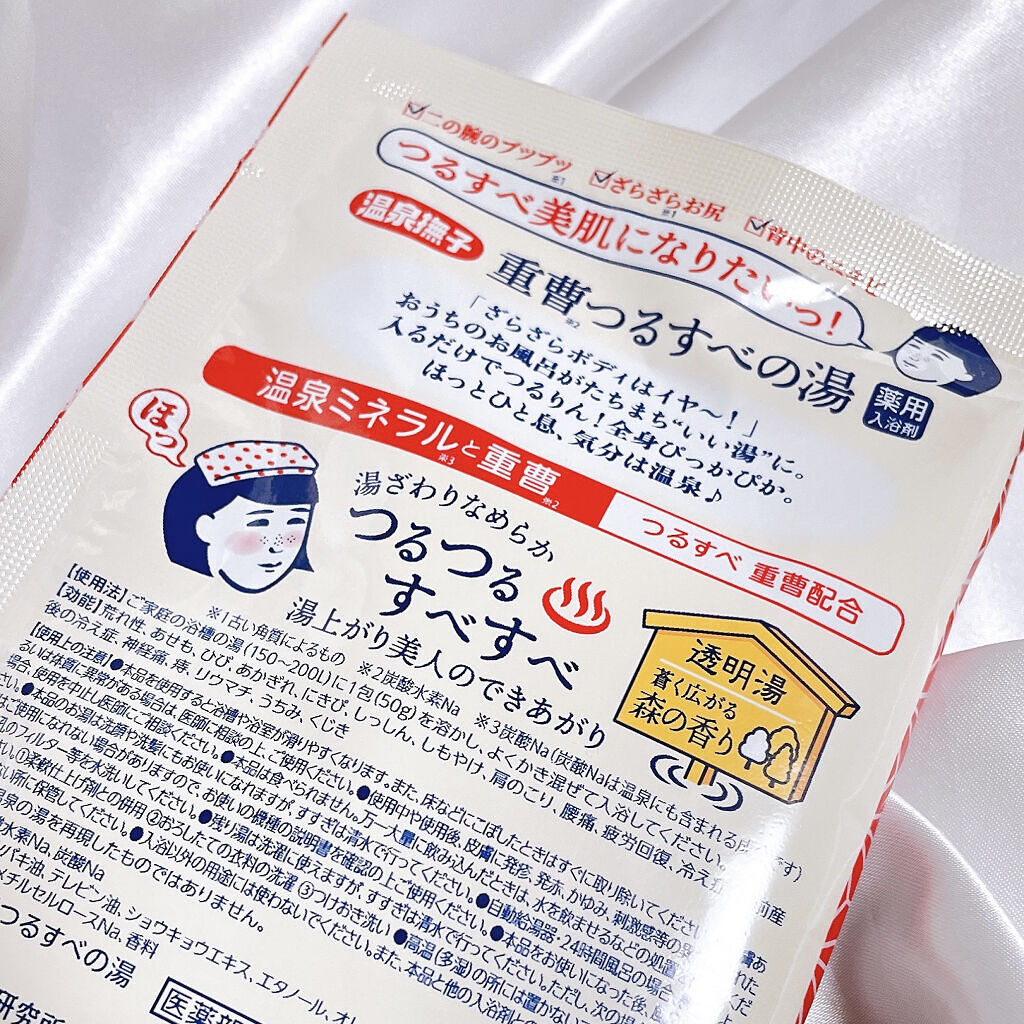 おうちで温泉気分を味わえます いつもバスソルトをつかっているんだけどそれよりも温まるような気がする! 肌あたりなめらかなお湯にうっとり とくにわたしが好きなのは重曹です しっかりと湯船であたたまり 一日の疲れをリセットしましょう