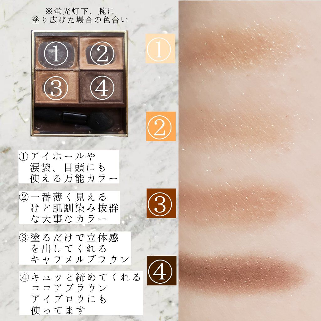 | 3つの異なる質感からなる4色パレットで、使い方によって雰囲気も質感も変わっていきます✨ | 詳細を見る |