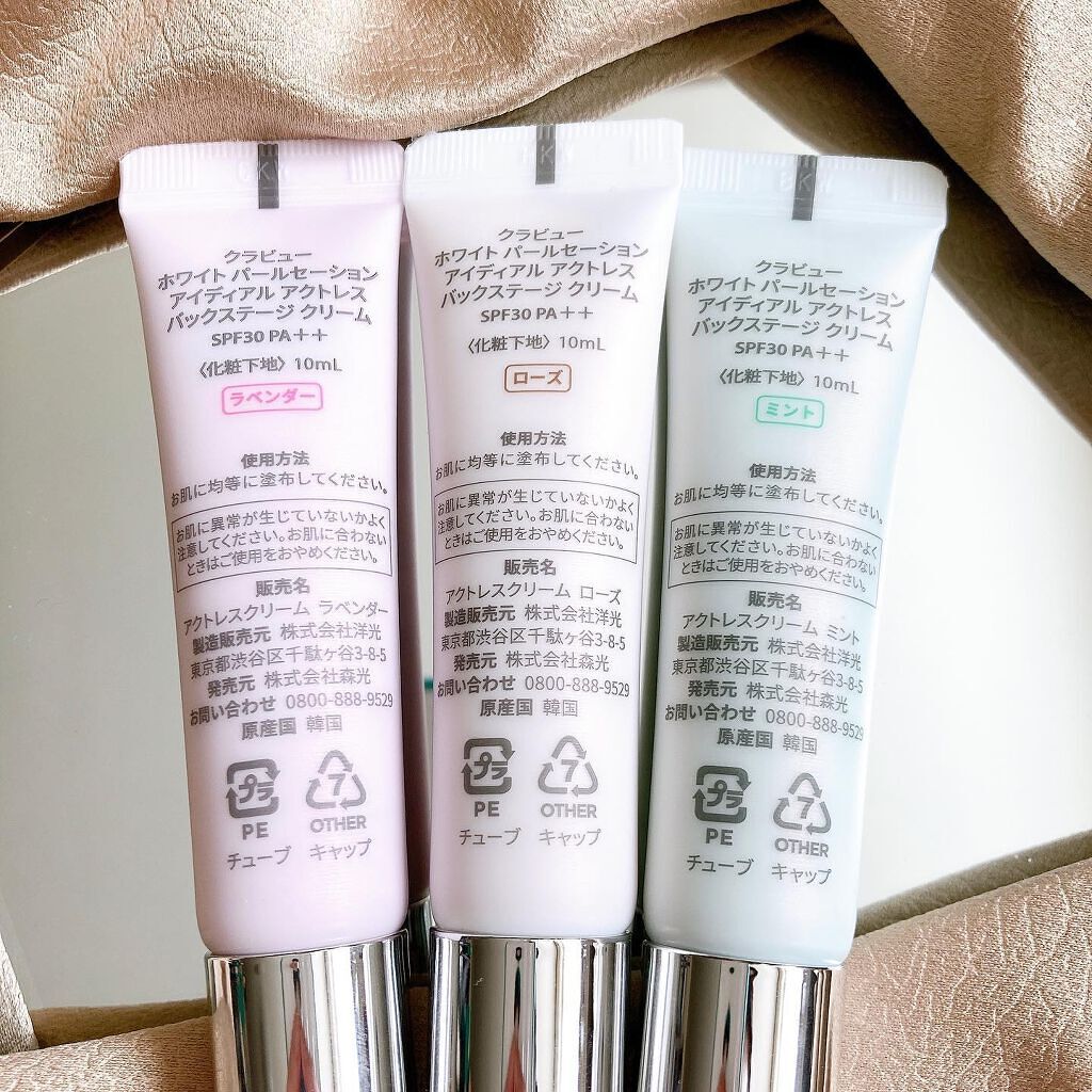 - 【クラビューアクトレスクリームローズ】水、メトキシケイヒ酸エチルヘキシル、BG、グリセリン、シクロペンタシロキサン、酸化チタン、サリチル酸エチルヘキシル、シクロヘキサシロキサン、エチルヘキサン酸セチル、炭酸ジカプリリル、ナイアシンアミド、オクチルドデカノール、ペンチレングリコール、ジエチルアミノヒドロキシベンゾイル安息香酸ヘキシル、ジフェニルシロキシフェニルトリメチコン、トリセテアレス-4リン酸、ステアリン酸グリコール、フェノキシエタノール、ステアリン酸グリセリル、ステアリン酸PEG-100、ステアリン酸PEG-2、セチルリン酸K、シリカ、マイカ、カルボマー、ラウリルPEG-9ポリジメチルシロキシエチルジメチコン、TEA、水酸化Al、ステアリン酸、香料、(アクリル酸ヒドロキシエチル/アクリロイルジメチルタウリンNa)コポリマー、スクワラン、エチルヘキシルグリセリン、酸化鉄、アデノシン、トリエトキシカプリリルシラン、EDTA-2Na、ポリソルベート60、イソステアリン酸ソルビタン、パールエキス、クロレラエキス、イモセミルエキス、カジメエキス、ヒラアオノリエキス、オオウキモエキス、ゲリジウムカーチラギネウムエキス、マコンブエキス、トコフェロール、シーウィップエキス、スピルリナプラテンシスエキス、1,2-ヘキサンジオール、カプリリルグリコール、メチルパラベン 【クラビューアクトレスクリームラベンダー】水、シクロペンタシロキサン、メトキシケイヒ酸エチルヘキシル、フェニルトリメチコン、酸化亜鉛、酸化チタン、炭酸ジカプリリル、シクロヘキサシロキサン、BG、カプリリルメチコン、グリセリン、ラウリン酸ヘキシル、ナイアシンアミド、ペンチレングリコール、ジメチコン、PEG-10ジメチコン、メタクリル酸メチルクロスポリマー、ウンデカン、ジステアルジモニウムヘクトライト、PEG/PPG-20/20ジメチコン、硫酸Mg、トリデカン、フェノキシエタノール、(ジメチコン/ビニルジメチコン)クロスポリマー、水酸化Al、ステアリン酸、香料、EDTA-2Na、エチルヘキシルグリセリン、イソステアリン酸水添ヒマシ油、グンジョウ、アデノシン、赤226、トリエトキシカプリリルシラン、トコフェロール、イモセミルエキス、カジメエキス、ヒラアオノリエキス、ゲリジウムカーチラギネウムエキス、マコンブエキス、オオウキモエキス、ヒマワリ種子油、1,2-ヘキサンジオール、カプリリルグリコール、パールエキス 【クラビューアクトレスクリームラベンダー】水、メトキシケイヒ酸エチルヘキシル、BG、グリセリン、シクロペンタシロキサン、酸化チタン、エチルヘキサン酸セチル、サリチル酸エチルヘキシル、シクロヘキサシロキサン、炭酸ジカプリリル、ジフェニルシロキシフェニルトリメチコン、ナイアシンアミド、オクチルドデカノール、ペンチレングリコール、ジエチルアミノヒドロキシベンゾイル安息香酸ヘキシル、トリセテアレス-4リン酸、ステアリン酸グリコール、フェノキシエタノール、ステアリン酸グリセリル、ステアリン酸PEG-100、ステアリン酸PEG-2、セチルリン酸K、シリカ、マイカ、カルボマー、ラウリルPEG-9ポリジメチルシロキシエチルジメチコン、トロメタミン、水酸化Al、ステアリン酸、香料、(アクリル酸ヒドロキシエチル/アクリロイルジメチルタウリンNa)コポリマー、酸化クロム、スクワラン、エチルヘキシルグリセリン、アデノシン、トリエトキシカプリリルシラン、酸化鉄、EDTA-2Na、ポリソルベート60、イソステアリン酸ソルビタン、クロレラエキス、トコフェロール、シーウィップエキス、イモセミルエキス、カジメエキス、ヒラアオノリエキス、ゲリジウムカーチラギネウムエキス、マコンブエキス、オオウキモエキス、スピルリナプラテンシスエキス、1,2-ヘキサンジオール、カプリリルグリコール、メチルパラベン、パールエキス