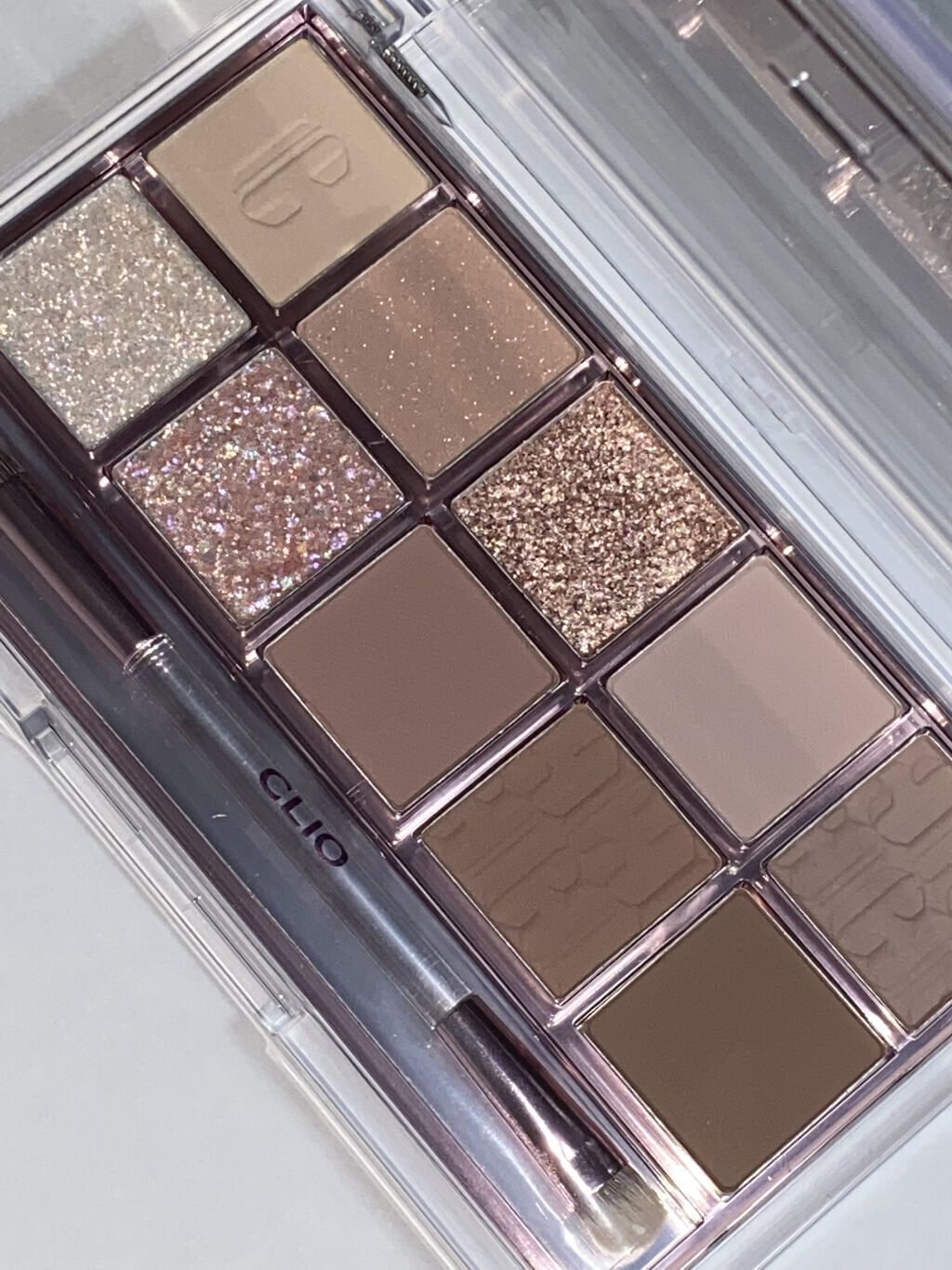 フラッシュ撮影(光を当てて撮る)とマットパールやシマーに入った繊細なパールの輝きや、大粒のグリッターの煌めきがよりわかりやすく撮れたので、参考になれば嬉しいな思い投稿します。 商品名:プロアイパレットエア ブランド:CLIO(クリオ) メーカー:CLUB CLIO 製造国:韓国 アイテム:12色アイシャドウパレット 質感:マット・グリッター・マットパール 内容量:9.6g(2.4g×2・1.2g×2・0.6g×4) カラー:13.ダンシングスモーキー
