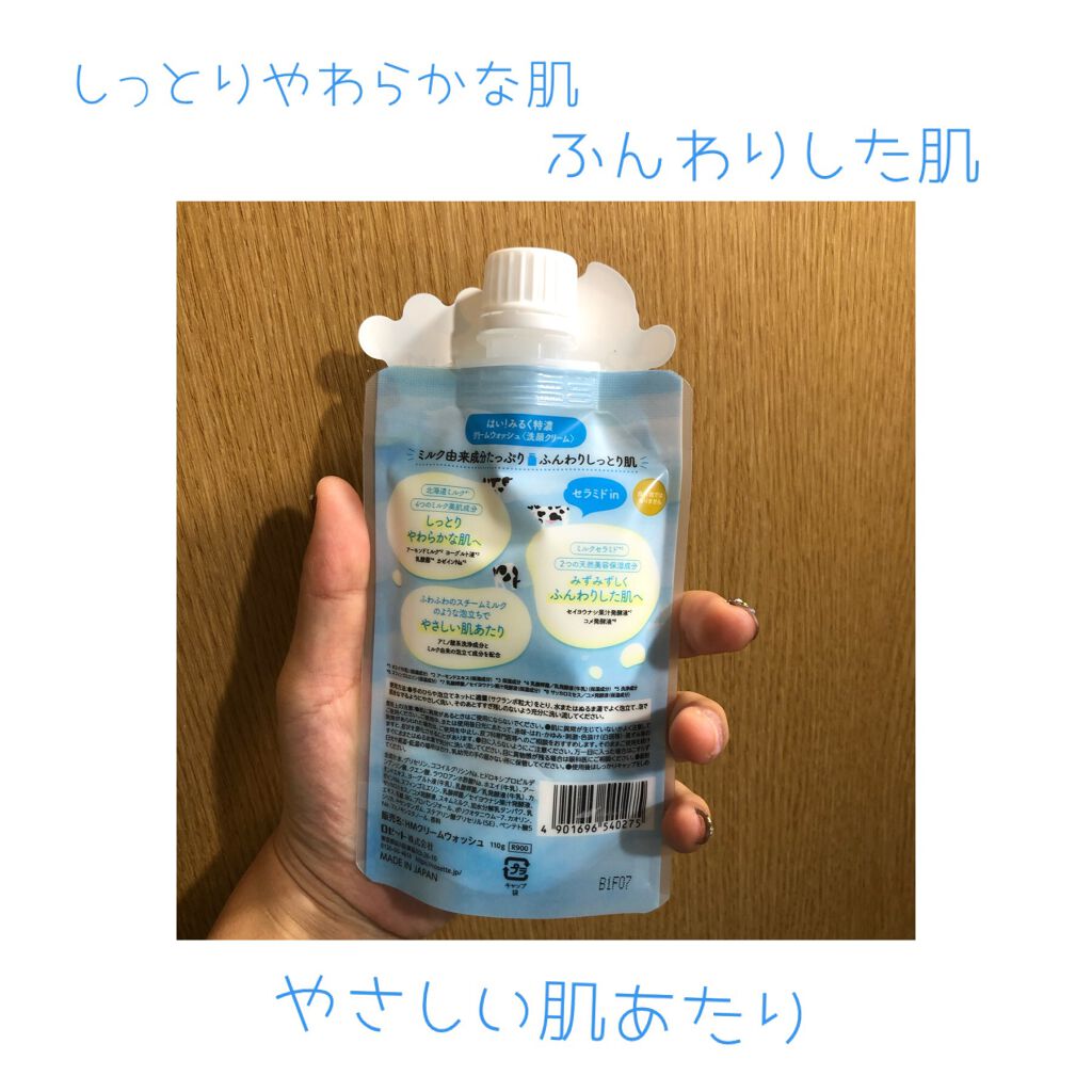 - 北海道ミルク*とたっぷりのミルク美肌成分を配合した洗顔クリーム。アミノ酸系洗浄成分とスチームミルクのようなふわふわ泡でやさしく洗顔し、ふんわりしっとり肌に。 透き通るような甘いベリーミルクの香り。 *ホエイ(牛乳)(保湿成分)