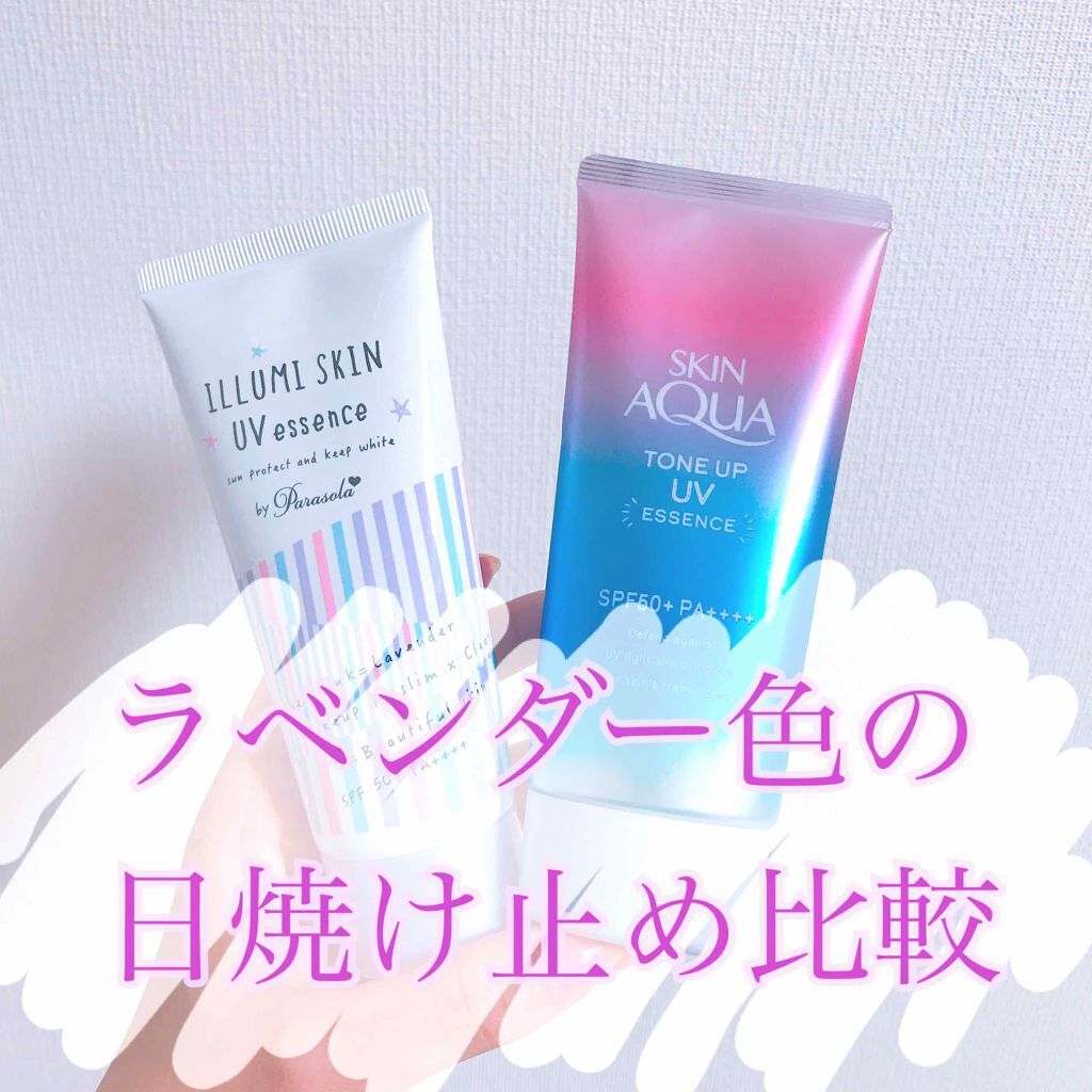 !!!ラベンダー色の日焼け止め比較!!!左→イルミスキンUVエッセンス右→スキンアクアトーンアップUVエッセンス最近ラベンダー色の日焼け止めが話題になっていて、ドラッグストアに寄ったら2つのラベンダー色の日焼け止めが売ってたので比較していこう...