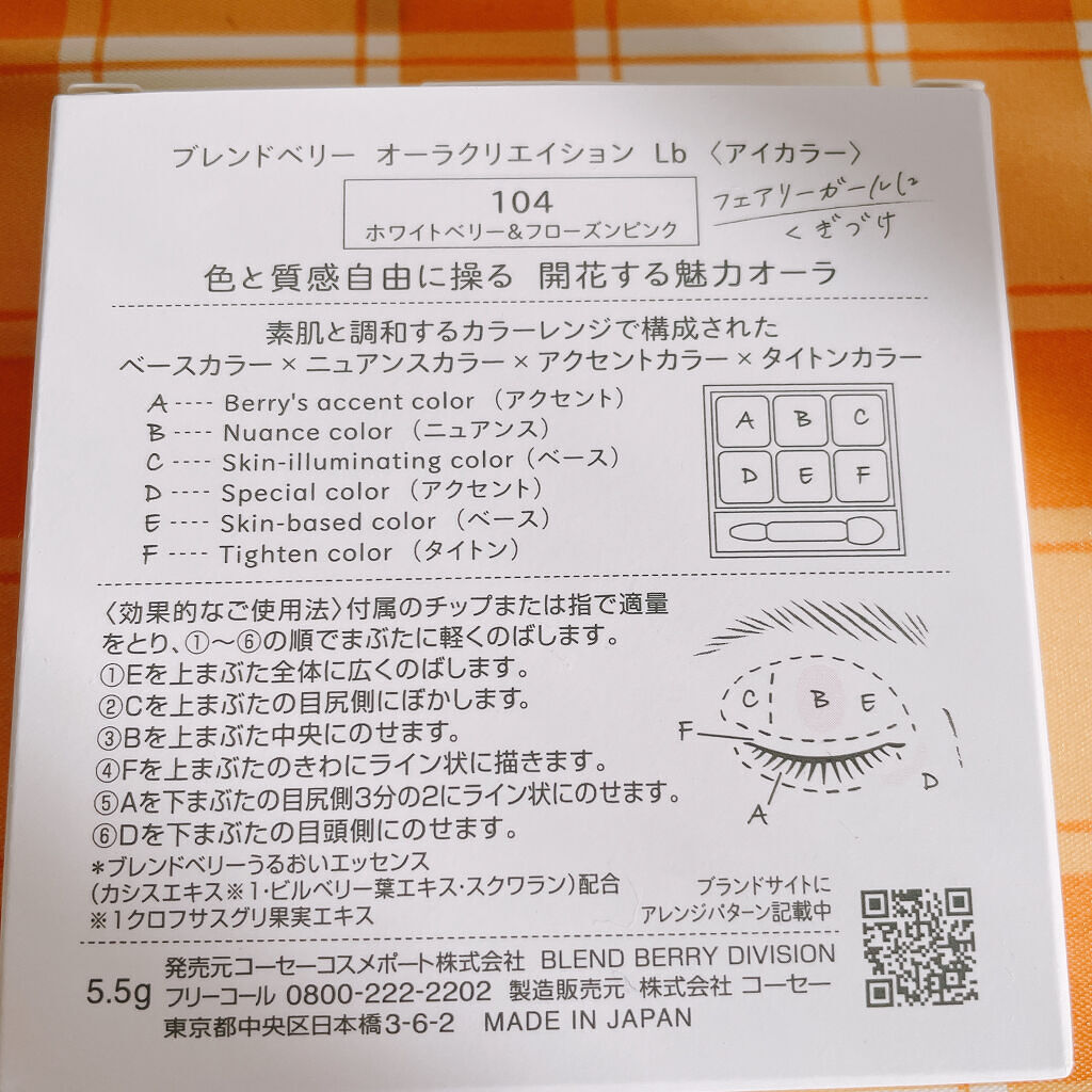 本日のアイシャドウ♡#BLENDBERRY#オーラクリエイション104ホワイトベリー&フローズンピンク右上のピンクオレンジのようなカラーを二重幅まで乗せて、真ん中下のくすみピンクを、まぶたに。左下ゴールドラメと、左上のホワイトラメを混ぜながら...