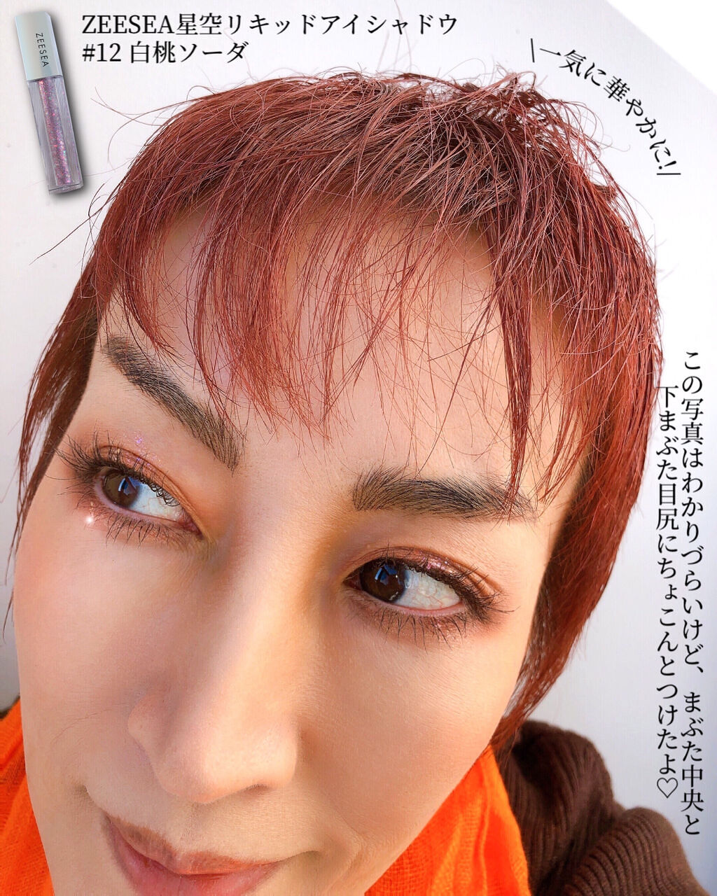 ZEESEAダイヤモンドシリーズ星空リキッドアイシャドウ05夕日の森イエローゴールド系かと思ってましたがグリーンよりの色ピタッと密着し色飛びやラメ落ちもしにくいです涙袋にいれるよりアイホールに、ぽんぽん塗りの方が使いやすかった今の時期だとボル...