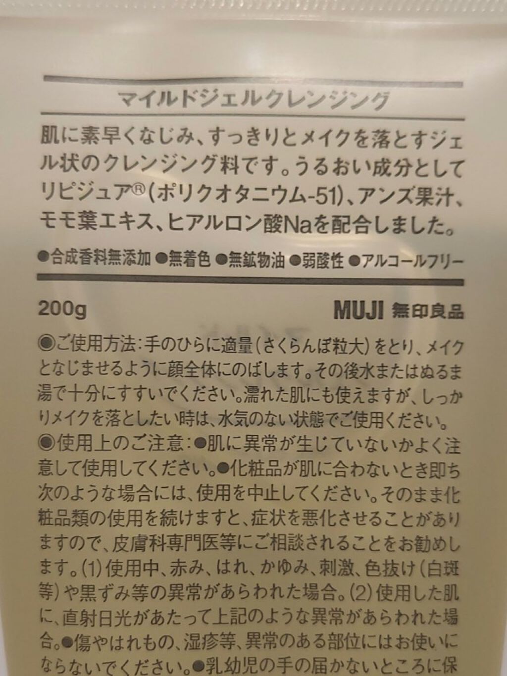 商品詳細情報無印良品 マイルドジェルクレンジング