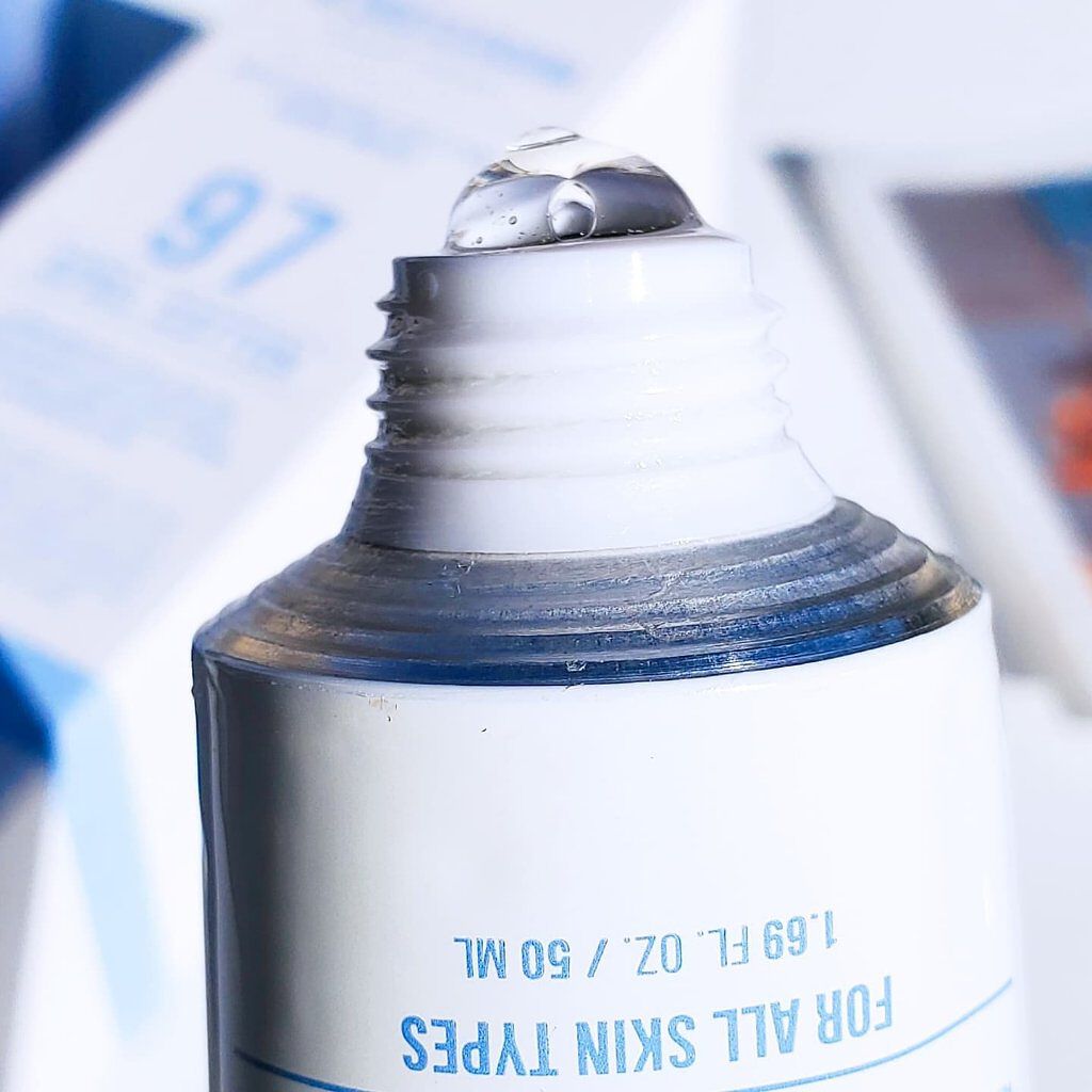 軽い乳液みたいにスルスル伸びて水分感のあるサンエッセンス。 ベタベタしないのに程よくしっとりして日焼け止めってよりほんとにスキンケアって感じ🤭 けどね、油分でメイクが崩れる感じではなくてしっとり水分保湿って感じでメイクのり良くなるやつ! 伸ばすと肌に馴染んで白浮きもしないし 日焼け止め特有のモキュモキュ感もなければ変に乾燥する感じもないし 日焼け止めにブルーライトカット機能もあるってすごい! ポンプなのが使いやすくて衛生的でいい◎
