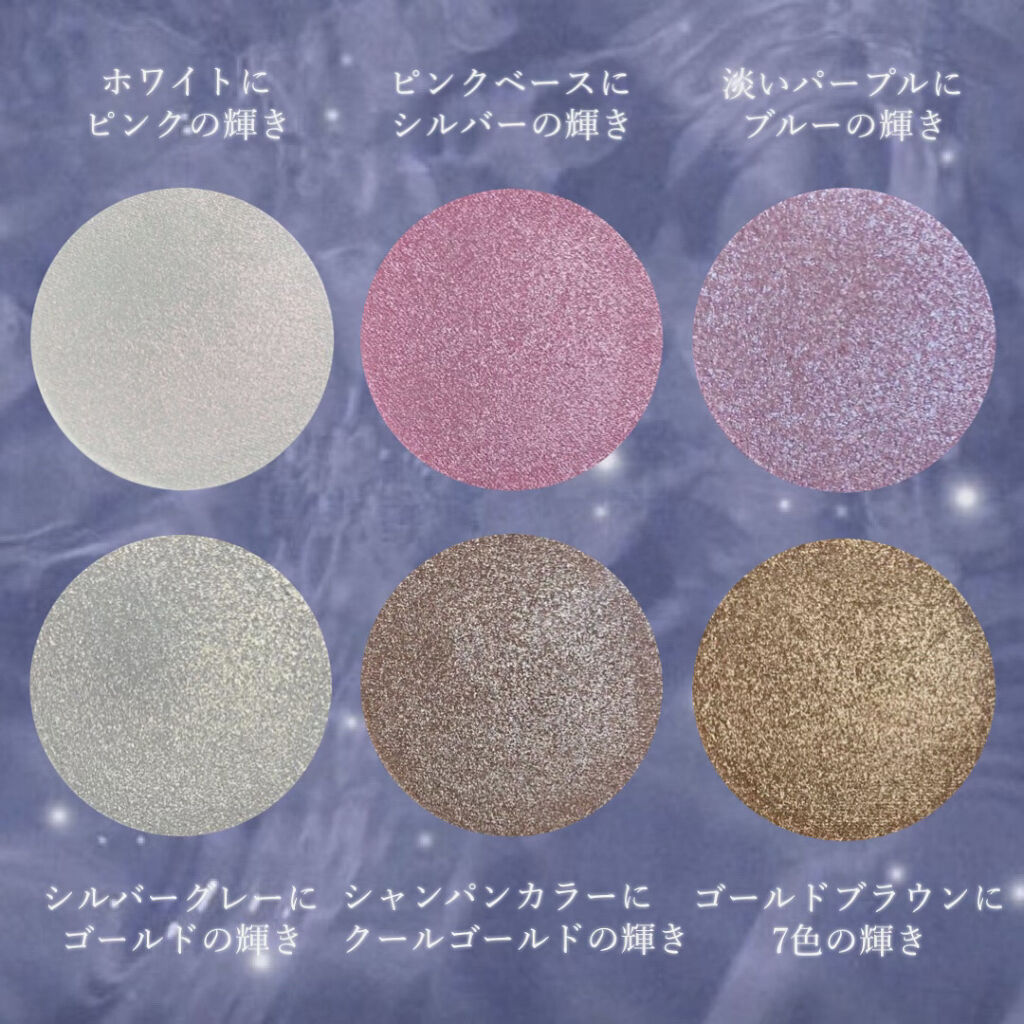 - 宝石のようなゴージャスなパッケージが目を惹く、6色のハイライトパレット。ウォームトーン、クールトーンどちらの方でもご使用いただけるカラーセレクトです。 パウダリーで柔らかい繊細なテクスチャーは、透き通るような輝きで、お肌を粉っぽく見せません。