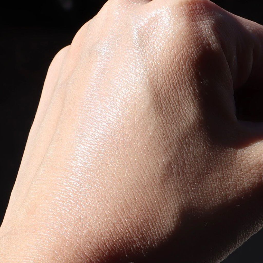 見て下さい。この濡れツヤ感。めちゃくちゃ可愛くないですか? しかもスキンケア成分を80%以上配合したジェルが肌にピタッと密着し、長時間うるおいとツヤをキープし、油分を抑えた伸びの良いテクスチャーでヨレや乾燥にも強く、夏でも崩れ知らずのアイテムです。 粉飛びすることもないので、パウダータイプでは実現できないまるで肌本来の輝きのようなナチュラルなツヤ感を演出してくれます。