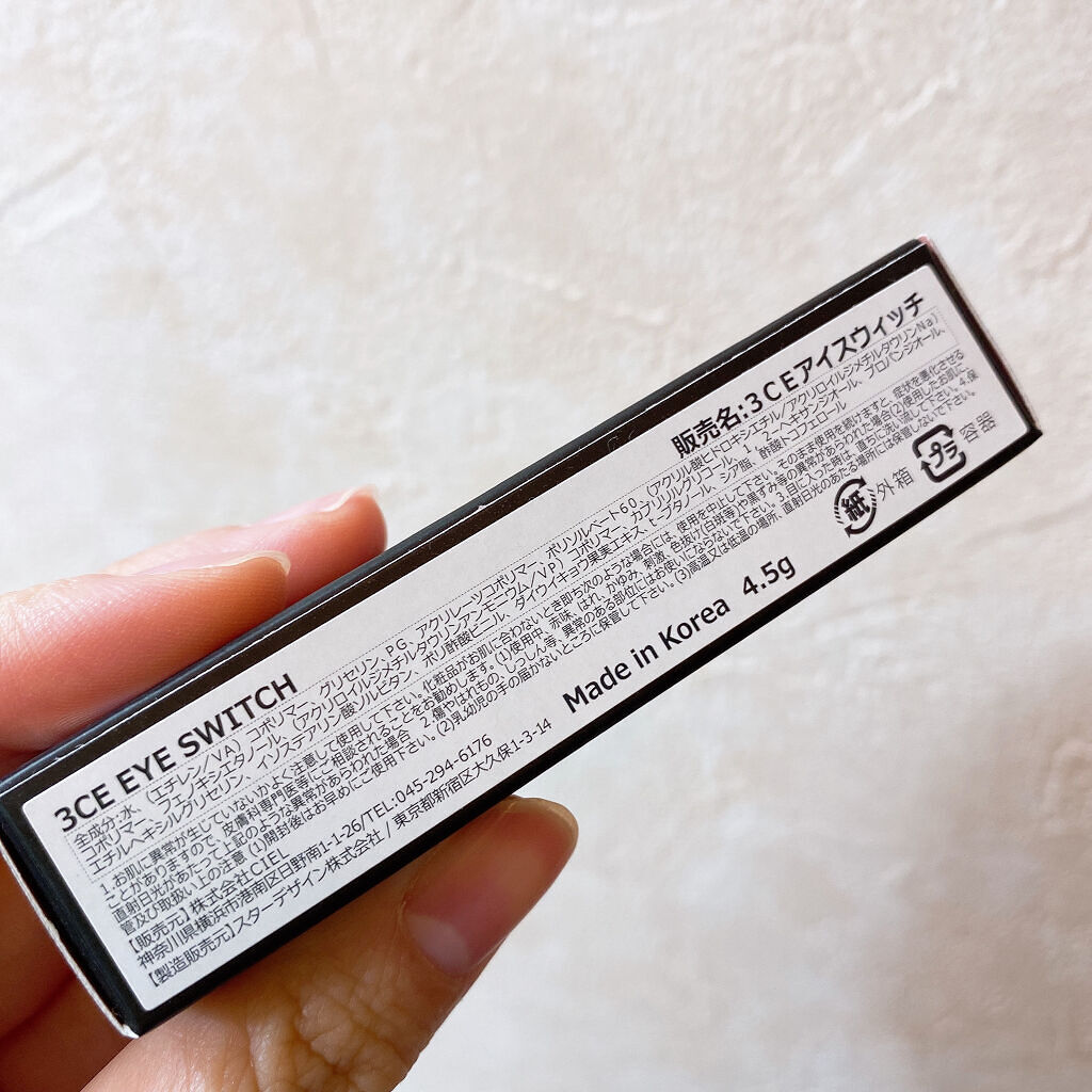 - きらめく多色ラメ。まるで星空 目元に存在感、簡単オン ■輝きも色味も自在なグリッター 大小さまざま、色味も豊かな多色ラメが目元にきらめきを。 薄づきだからやりすぎないのに、しっかり存在感。 ■塗りやすい極細チップ やわらかいゴム製アプリケーターで 細かい部分にも塗りやすいから、繊細な輝きを簡単オン ■ケア成分*1配合。明るい*2目元印象に ビタミンE*3とシアバター*4配合で目元にうるおいをプラスしかも、お湯で簡単オフ *1 グリセリン:保湿・保水成分 *2 メイクアップ効果による *3 酢酸トコフェロール:整肌成分 *4 シアバター(シア脂):油性基剤 ※注釈3・4は3CE アイスイッチに配合。
