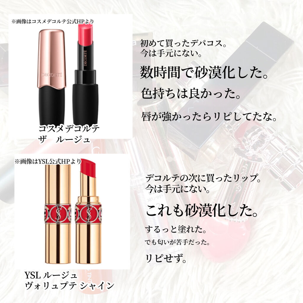 | 口紅・グロス・リップライナーランキング第73位 | 今トレンドのちゅるんと透けるような 軽めなツヤリップで毎日使いやすい質感👌🏻 | 詳細を見る | |