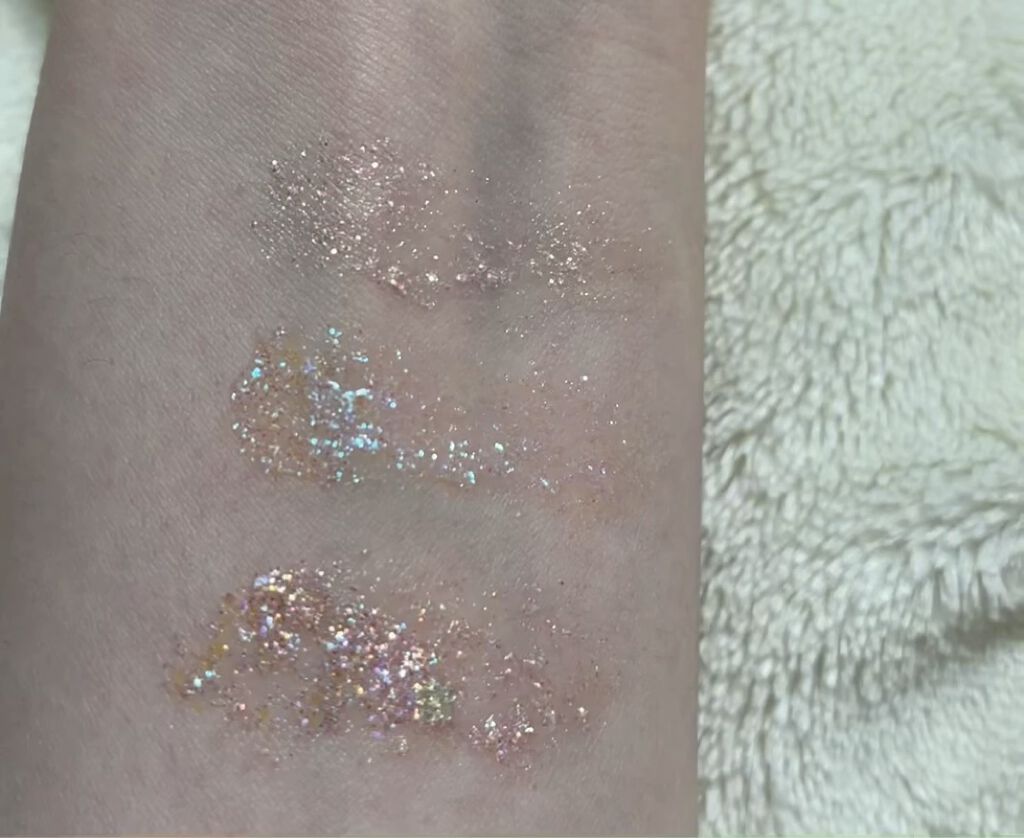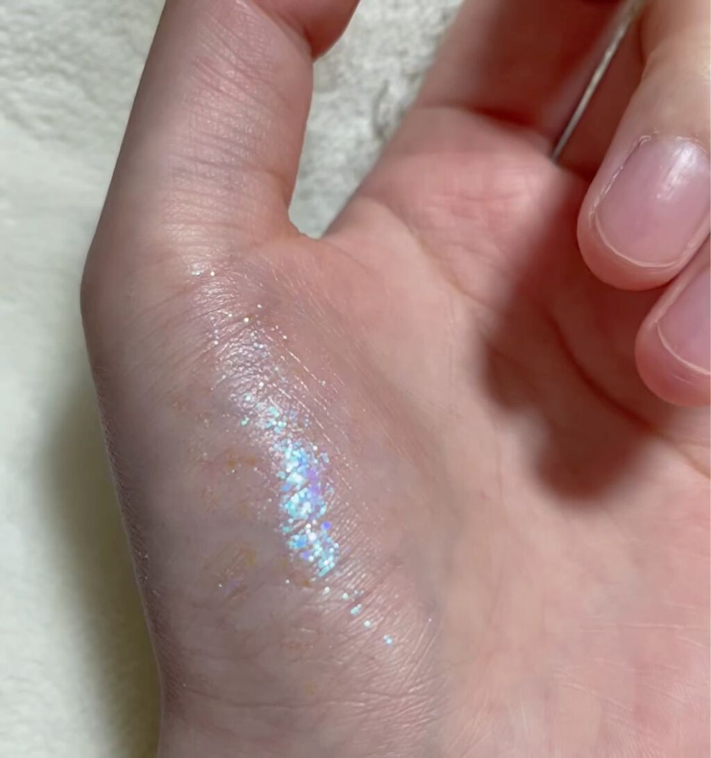名前の通り、ゼリーみたいにプルプルのグリッターです🤤 テクスチャがプルプルなので、うるうるキラキラのまぶたに仕上がります✨ 私的に優勝カラーは01のオーパル! トップ画像にも使用しているんですが、綺麗な青ラメがぎっしり😮! いつものシャドウに重ねても、涙袋に乗せても◎ 本当にうるうるの瞳が完成します🥺✨