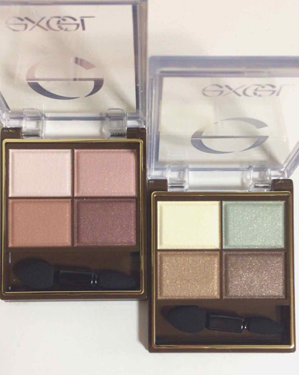 存在を知った時には既に過去の限定色だったマグノリアブラウンが復刻したということで、すぐにエクセルオンラインストアで注文してきました🏃♂️ 左上と右下は結構青み強めで、右上はガッツリした青みカラーではなく、左下はしっかり黄みのベージュです。 発色強めなので締め色が欲しい方なら満足できそう!こちらもゴールドパール入り。