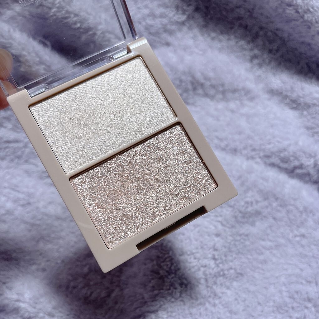 しっとりとした粉質に感動! しっとりとしていて、粉飛びしにくく感じました! 2種類のハイライトが入っていて便利! キラッキラのラメのタイプと、細かいパールがぎっしりと詰まった艶タイプの2種類が1つのパレットに入っています! 500円でこのキラキラ感と艶感はすごいなと思いました! コスパよく、しっかり輝くものを探している方におすすめです!