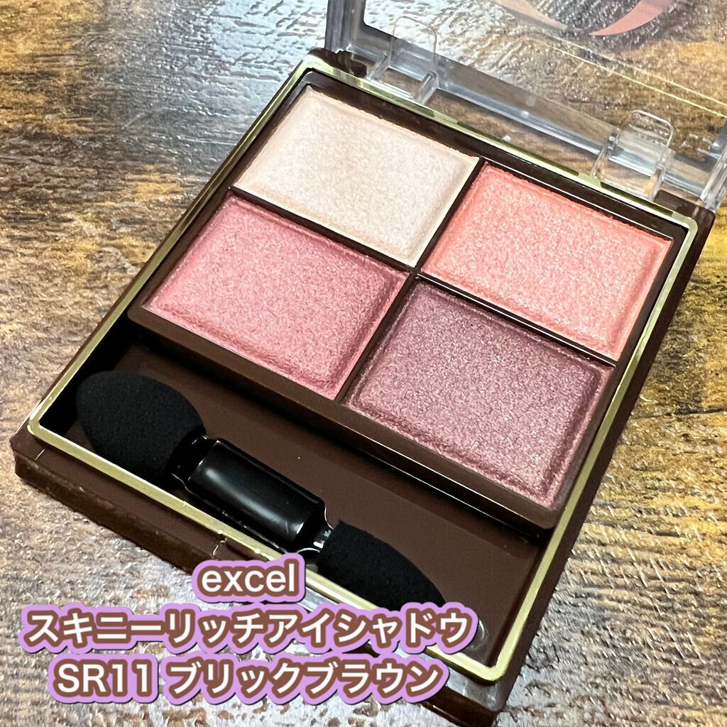 LIPSショッピングで購入致しましたexcelスキニーリッチシャドウSR11ブリックブラウン久しぶりのexcelスキニーリッチシャドウプチプラなのにデパコス並みのクオリティナチュラルなピンクブラウン綺麗なグラデーションが完成しますイエベ向けで...