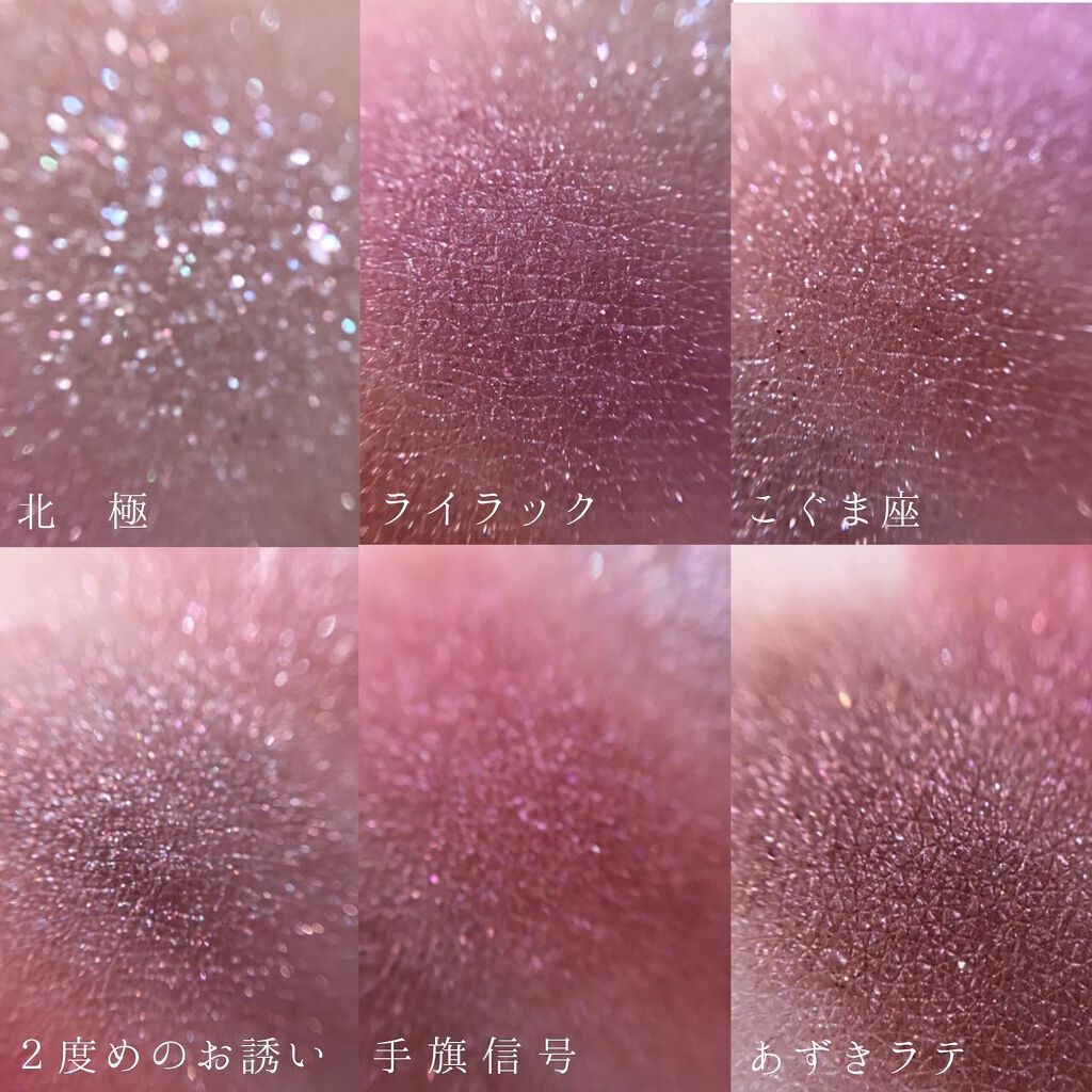 繊細なシルバーラメから大粒の多色グリッターまで多種多様な輝きがホリデーらしくて気分が上がる。 個人的には偏光ピンクラメ+多色のグリッターの左下シャンパンキャンドルがかわいいもの同士の組み合わせでお気に入り。 スノーマン 、ピンクエンジェル、シュトーレンとクリスマスに因んだ色名もかわいい🕯️ 底色はほぼないので他のアイシャドウで陰影のベースを作った後にトッピングとして乗せるのがおすすめ。 公式でおすすめされている16 バイオレットニットとの組み合わせが冬ムードたっぷりで真似してみたい🤍
