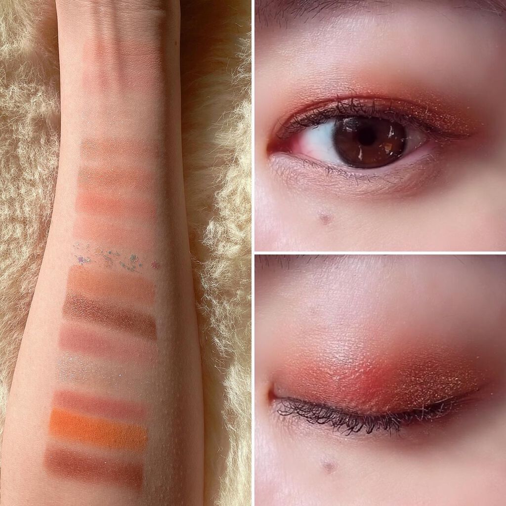イエベカラーのアイシャドウパレット買ってみました!! めっちゃ発色いいし、密着力があって良かったです! 少し強めに取ってみたら中はしっとりめのアイシャドウで取ることができました。